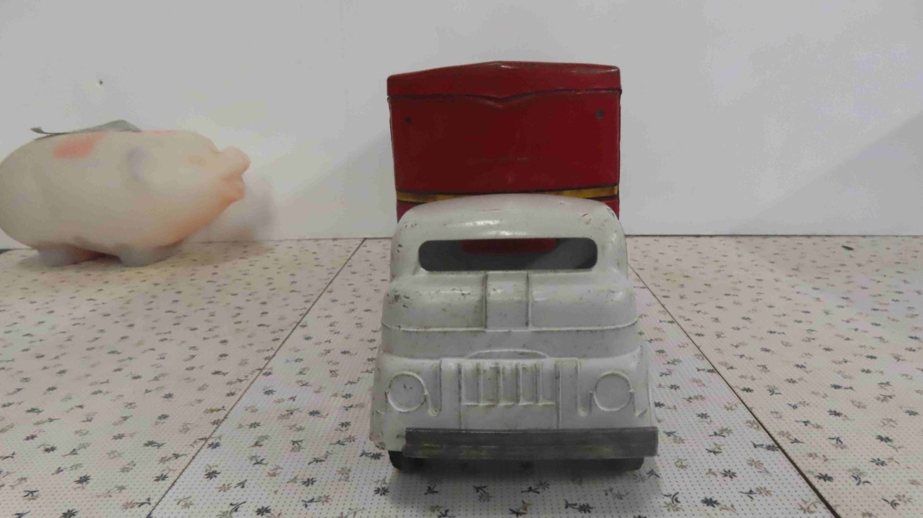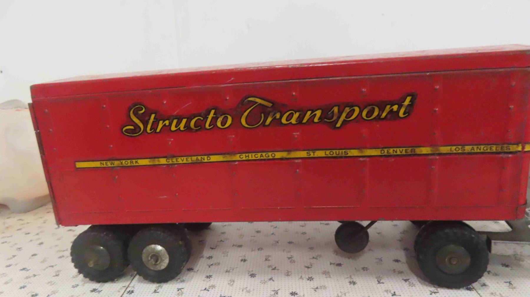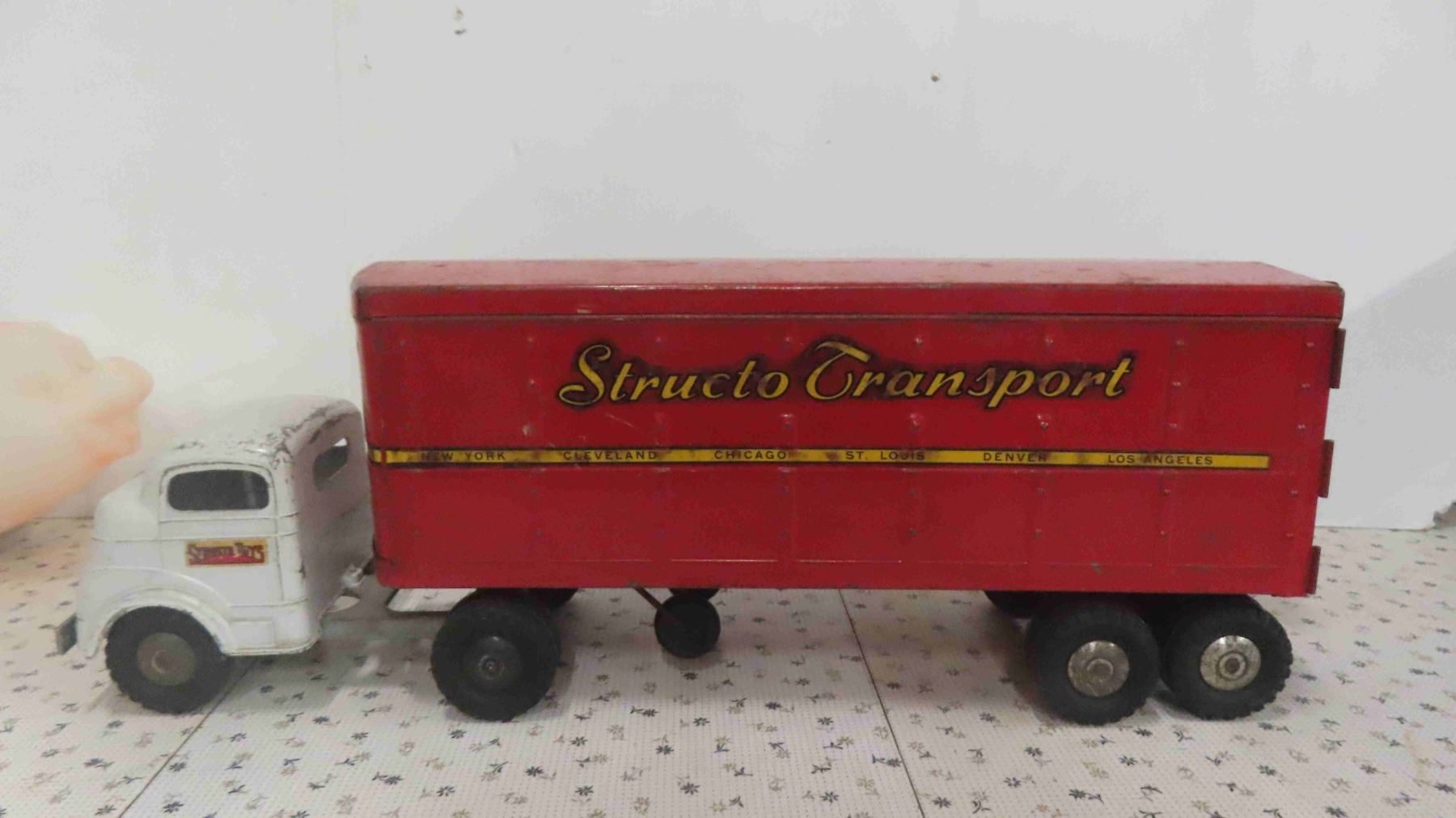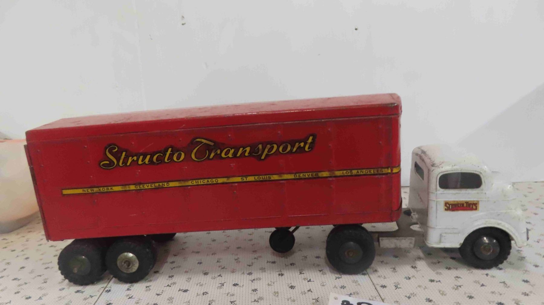 Antique Struted Transport Steel Toy 20'' Long - Missing 1 Back Trailer Door, Otherwise Great Condition