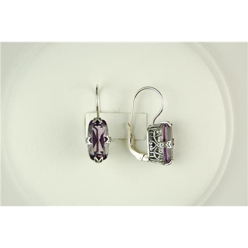 This Pair of Antique Style Earrings are an Authentic & Accurate copy of a pair from the 1930's - but - THIS pair is in Mint condition! The Earrings are Solid Sterling Silver and each earring is set with a beautiful Oval Genuine Amethyst - which is the Birthstone for February. The Total Weight of the two Amethysts = 6 Carats! The filigreed basket settings that hold each Amethyst are truly exquisite. The earrings have European earwire tops.