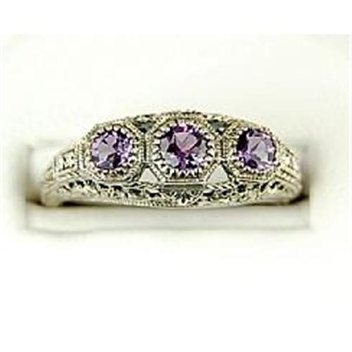 This Antique Style ring is an Authentic & Accurate copy of a ring from the 1930's - and - THIS one is in Mint condition! The ring is Solid Sterling Silver ring and the 3 Genuine AMETHYSTS are set across the top, with 2 small DIAMONDS set each side as accent. This ring is now a size 8, and I can easily resize it for you.