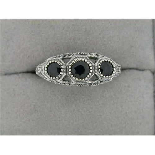 This Vintage Style Filigree ring Accurately and Authentically reproduces the intricate filigree work of the 1930's. It features 3 Genuine Blue SAPPHIRES set across the top.