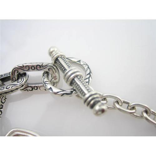 This Antique Style Bracelet is an Authentic and Accurate copy of one from the 1930s and THIS one is in MINT condition! The Bracelet is SOLID STERLING Silver and it is often referred to as an 'Antique FOB BRACELET'. It is 7 1/2" in length and there are 6 Antique Style FOBS dangling as charms from the bracelet. The Fobs are set with different Gemstones, Topaz, Amethyst, Garnet, Peridot and Blue Topaz. Because of the style of the clasp, the Bracelet can be worn on an average or smaller than average wrist.
