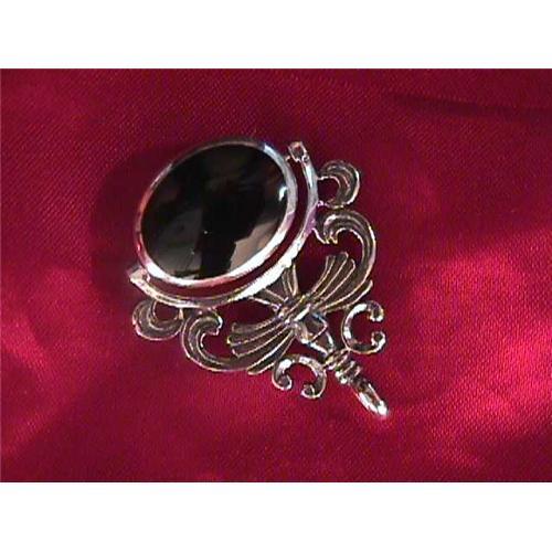 Antique Style Sterling Silver FOB Style pendant with a Black Onyx on one side and Mother of Pearl on the other side.