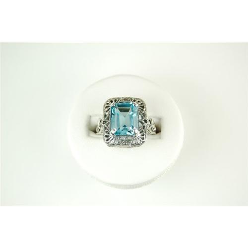 <table width="100%" border="0" cellspacing="0" cellpadding="4"><tr><td><em> If you love the color BLUE you will adore this ring!</em></td></tr><tr> <td width="100%"> This Vintage Style ring Authentically & Accurately copies the Exquisite filigree work made popular in the 1930's - and THIS one is in Mint condition! This ring is Solid STERLING Silver and it features a rectangular Blue Topaz = 5 CARATS! The beautiful Blue Topaz is surrounded by very beautiful filigree work. The top of this ring measures 5/8" x 4/8". This ring is a size 7, and I can easily resize it for you. </td></tr><tr> <td> </td></tr><tr> <td>Reference #: 41776_1</td></tr><tr><td>Condition:Mint</td></tr><tr><td>Year:1980</td></tr><tr><td>Title: Antique Style Filigree Ring BLUE TOPAZ 5 CTS!</td></tr><tr><td>Location:Virginia</td></tr></table>