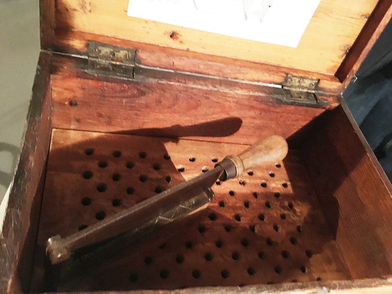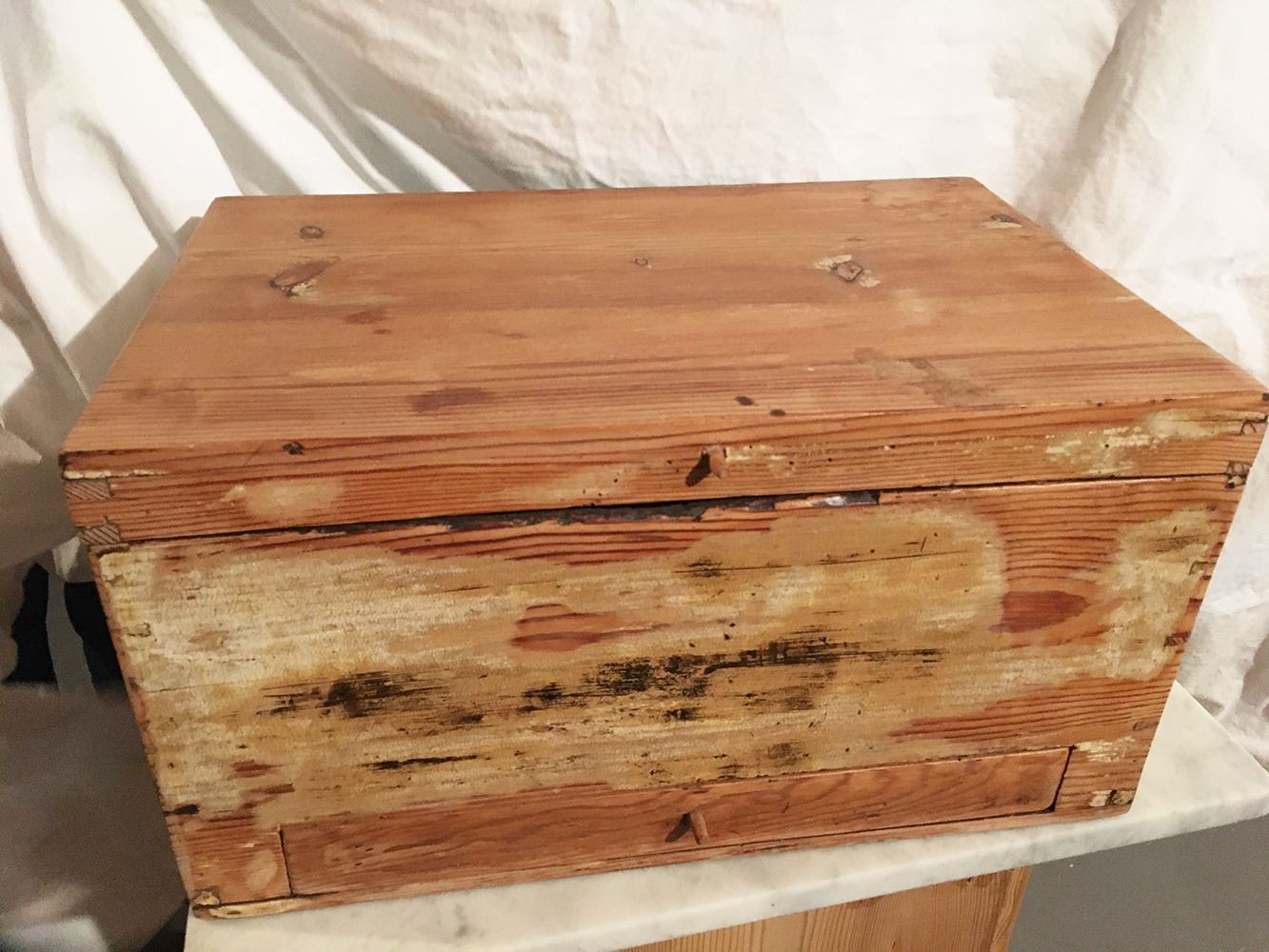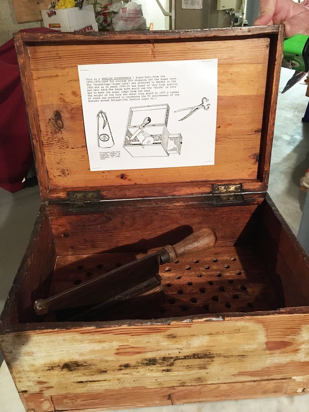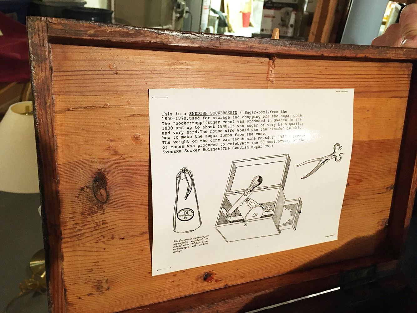 Rare! Antique Swedish Sockerkrin / Sugar Box with drawer, including is an explanation of what it is and how it was used in Sweden. Measures appro. 15 inches x 10 inches x 8 inches.