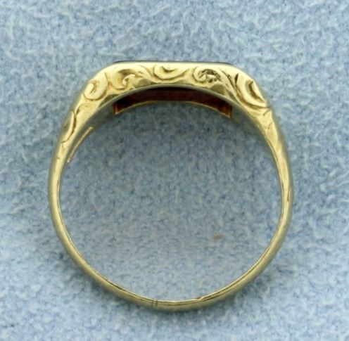 In 14K yellow gold, it is a size 2 3/4, with great workmanship on shank! 2.9g