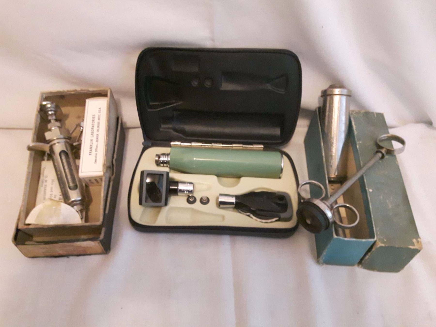 Antique Syringe Sets (2) And An Ear Checking Instrument
