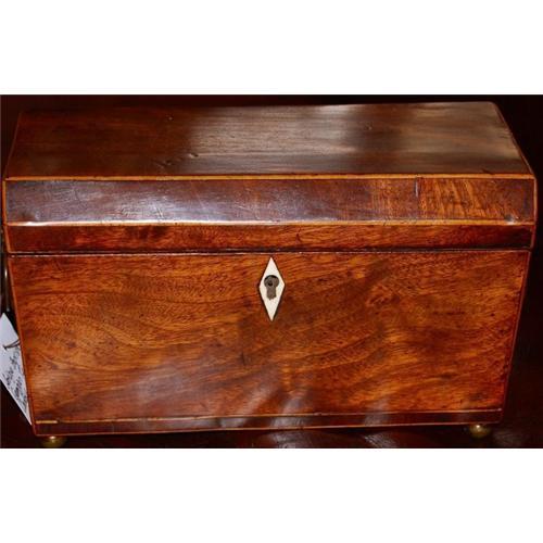 Antique Tea Caddy, c. 1870. Some repair to satinwood and probably replacement feet. See photos.