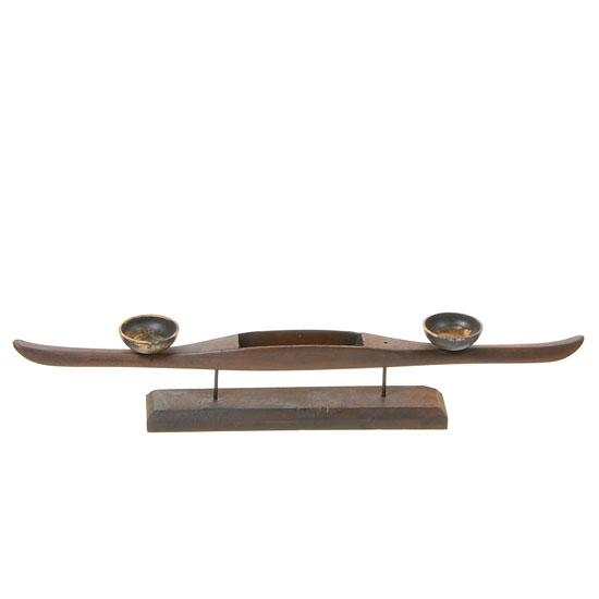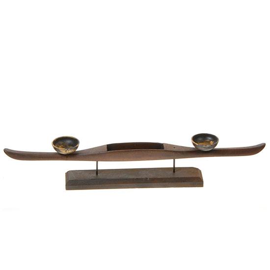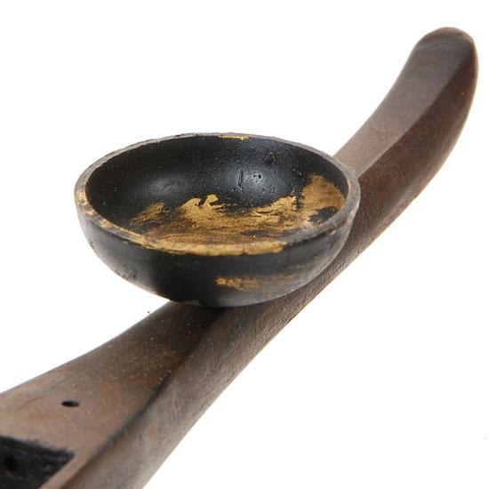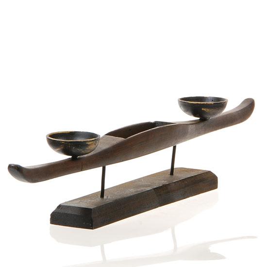 Antique teak silk loom tool "WEFT" made into candle holder 17"