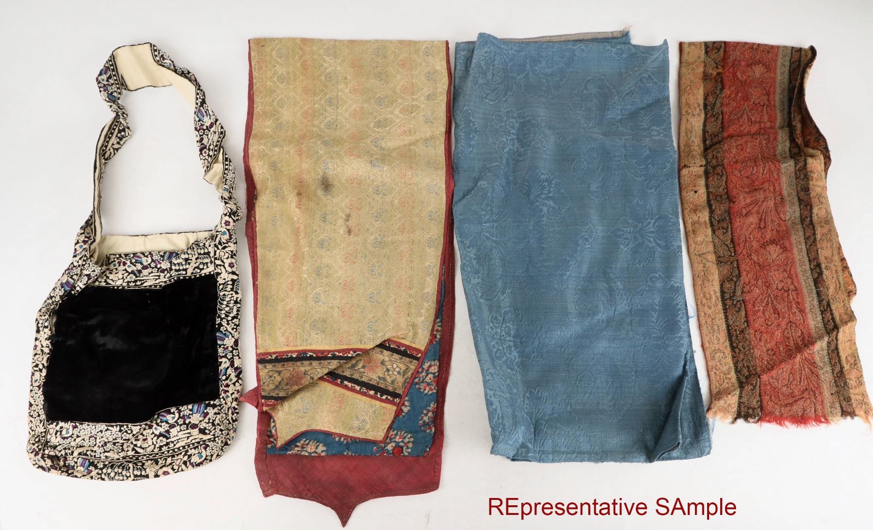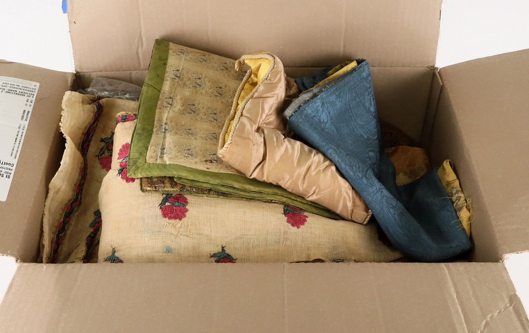 Antique textile collection of various pieces of antiquarian cloth from the Belle Northrup collection, professor at a Columbia University, teaching classes on art and textiles until McCarthy got her "red-listed" and ruined her career about 1950. Northrup wrote a text on antiquarian textiles which was about to get published. That draft currently sits at the Nevada Historical Society. We are not textile experts, so you'll have to be the judge. This group was held by the family, and another part was gifted years ago to NHS.