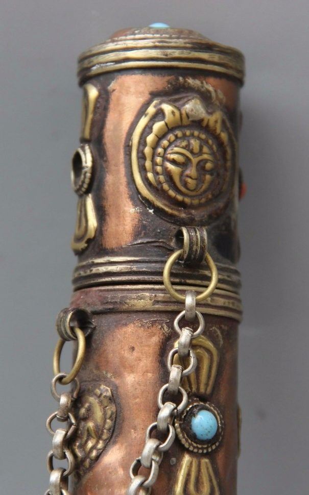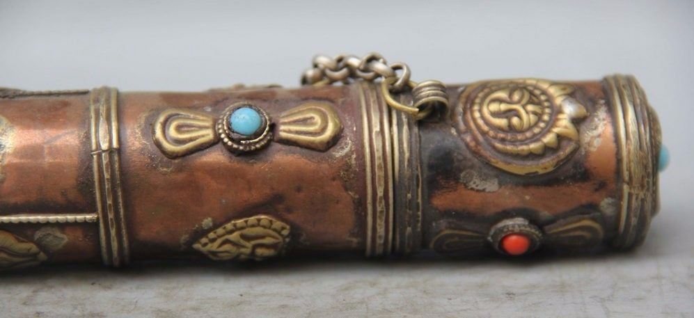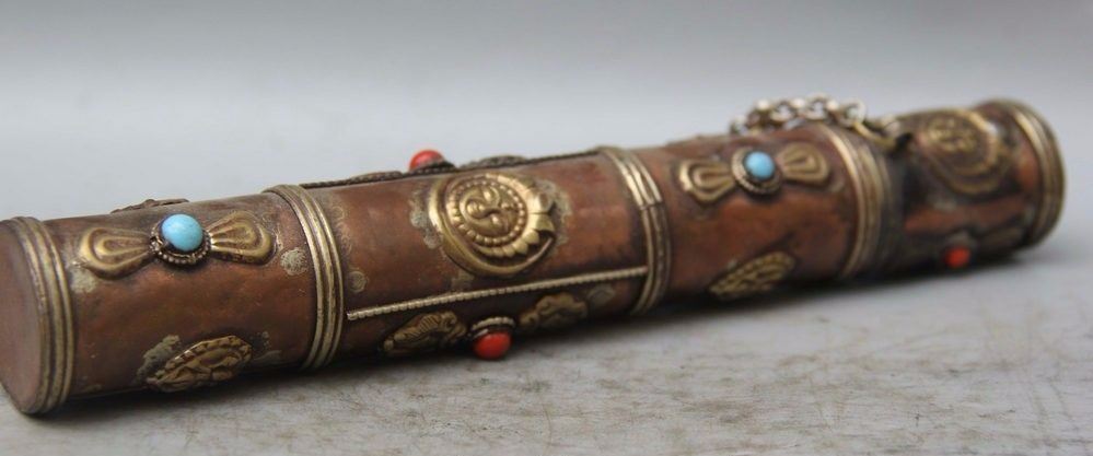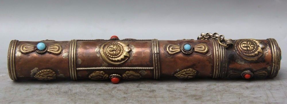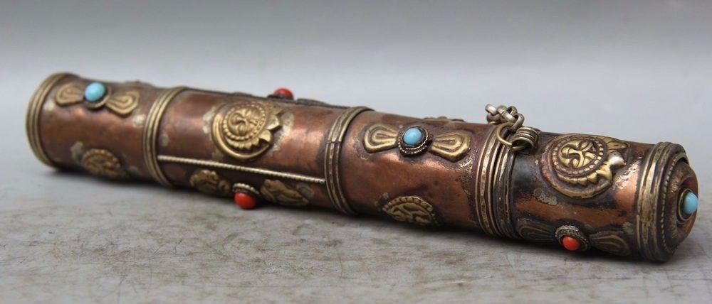 Royal Families were used to send message in this Copper/brass tube Studded with antique Jade and gems; Age- 16/17th century; Length 203.2 mm; Extremely rare Antique;