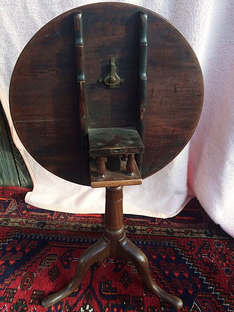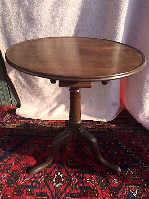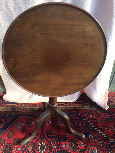 Antique tilt top table, early 1800s, with dish top, all dove tailed with Queen Anne legs, original birdcage and mechanism.
