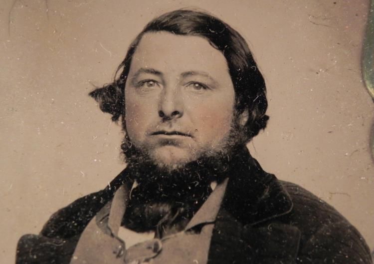 Antique Tintype Photo Heavyset Man w/ Beard, in Border