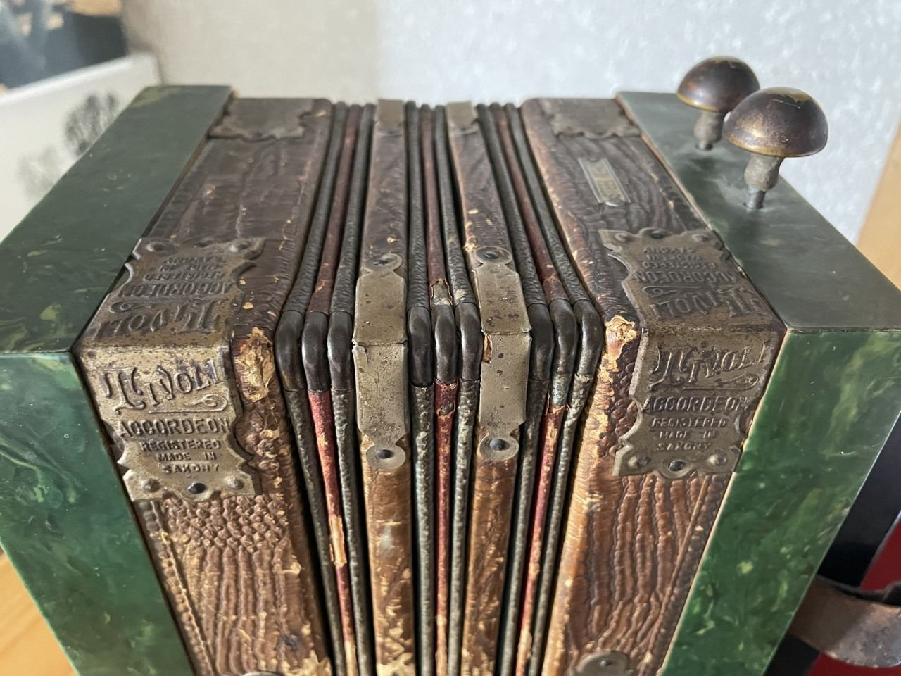 Antique Tivoli Accordion , Made in Saxony , In Case. Beautiful Antique. diatonic button accordion