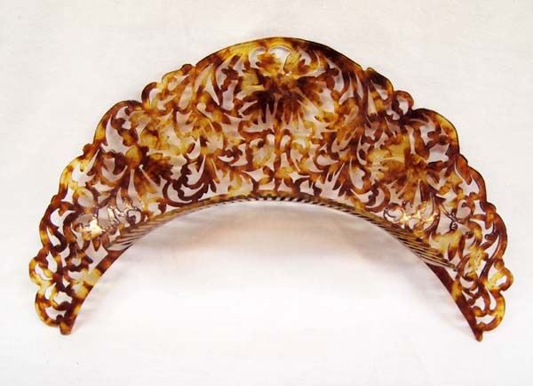 Antique Tortoise Shell Colored Celluloid Crown (Peineta) Hair Comb, measures 2.5''W x 7.5''L, very ornate