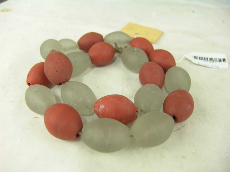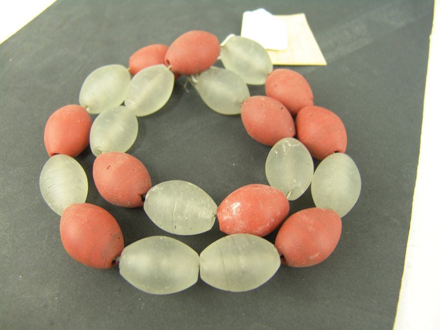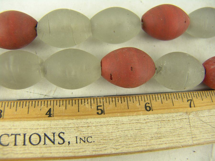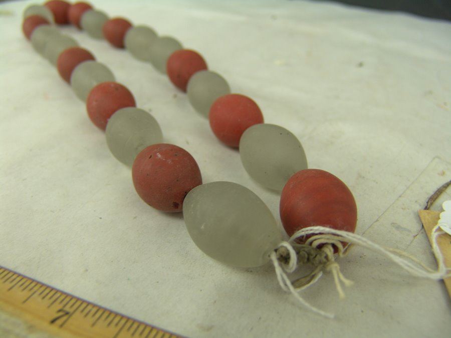 Single strand of old opaque white and red Dutch glass trade beads. Very good condition.,Ca. 1600s,25"