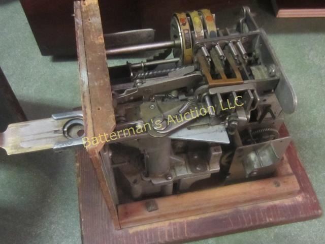 Trade stimulators are counter top machines widely used to encourage shoppers to indulge in a game of chance. They became popular in American saloons during the 1880's. Measures 9"x 9"x 8" takes Nickels and Works!