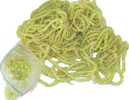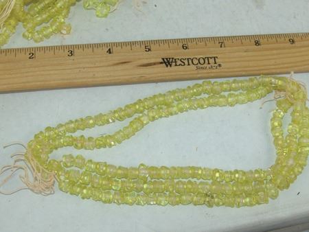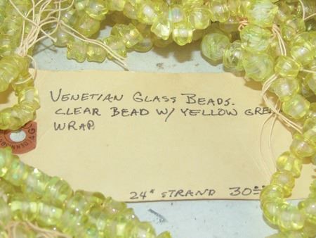 Early 1900s, Wholesale lot of many strands of beads marked "Venetian Glass" - clear beads with yellow/green wrap. Very good condition. 24" strands