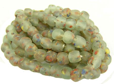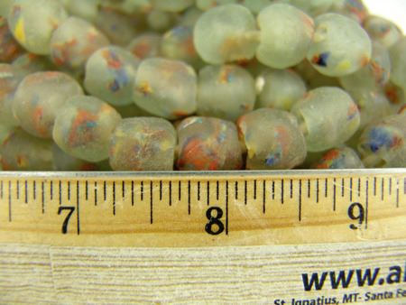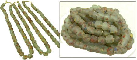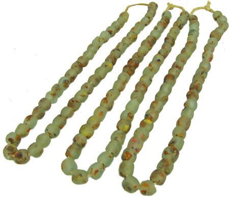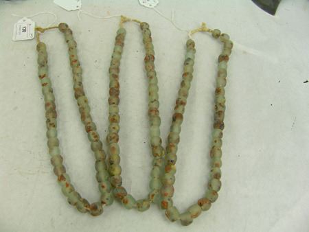 Late 1800s, Three strands of rare fancy translucent Venetian glass tradebeads with colorful accents. Very good condition. 22" each