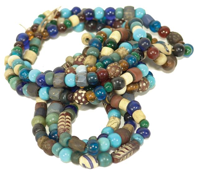 Various Ages, Three strands of rare Lewis & Clark tradebeads - Celilo Village site, Columbia River. 28"