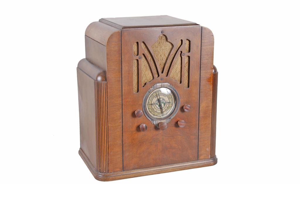 Antique Tube Radio by Silvertone Encased in wood, from the Art Deco Era, in working condition as int