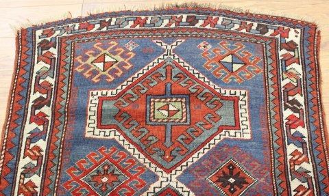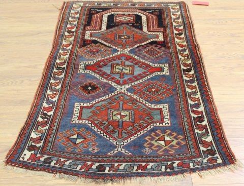 Approx. 35" x 61". Edges frayed, otherwise good condition.