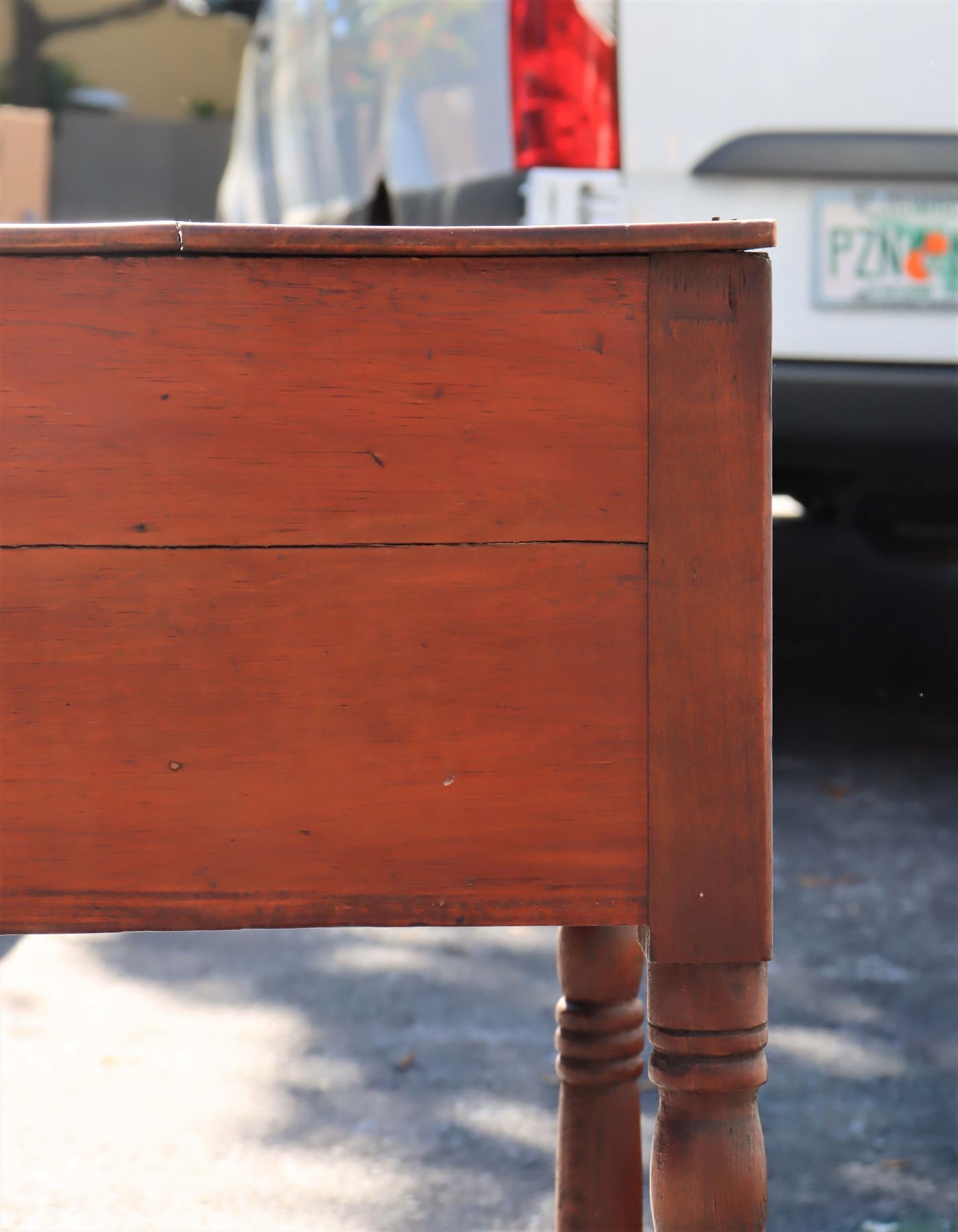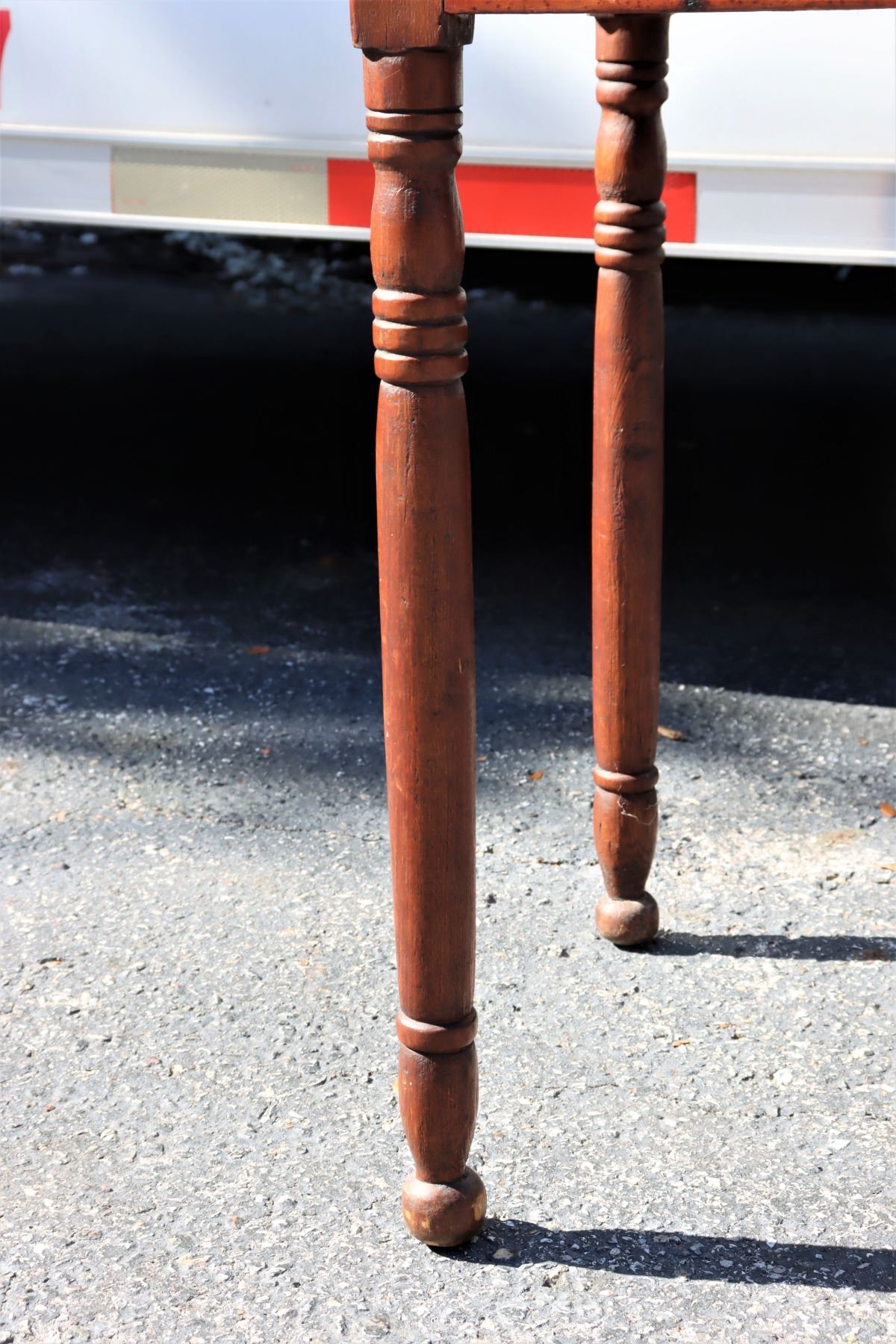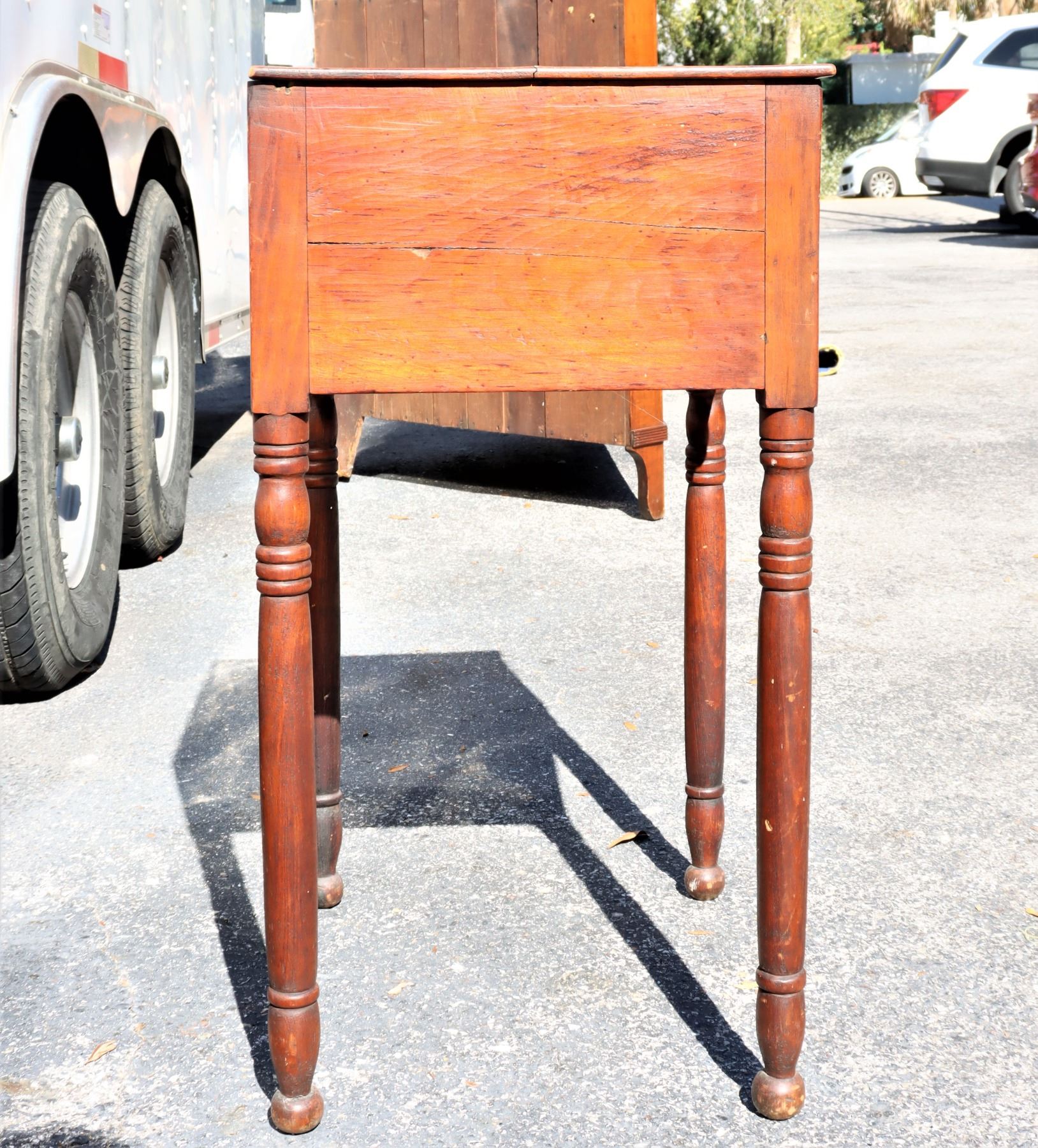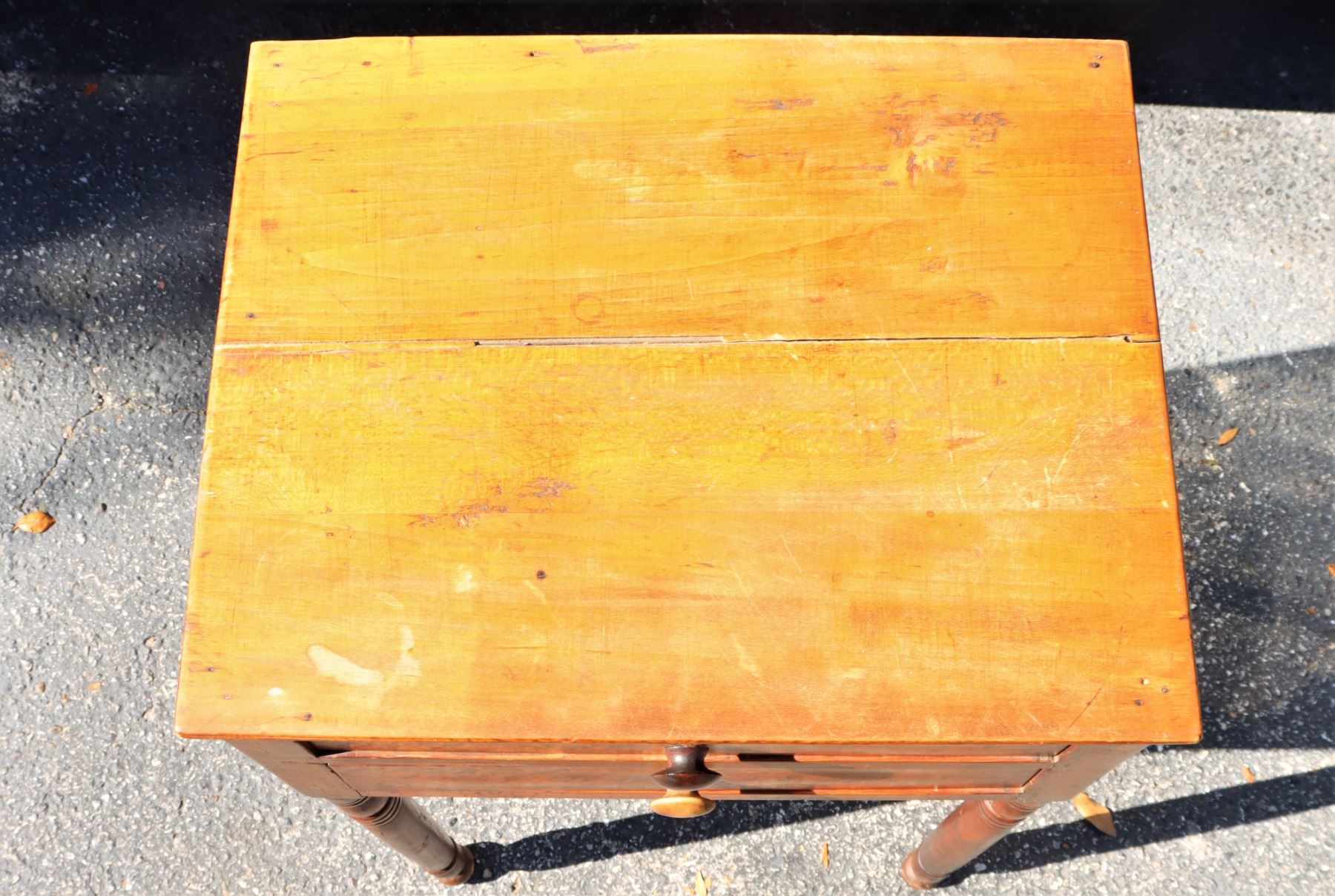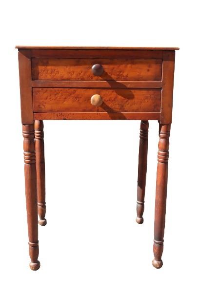 Side table with two drawers, turned legs.