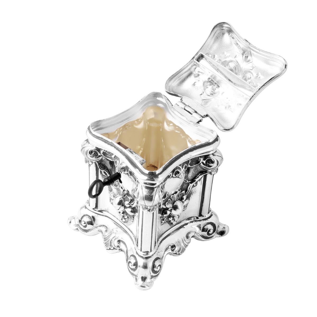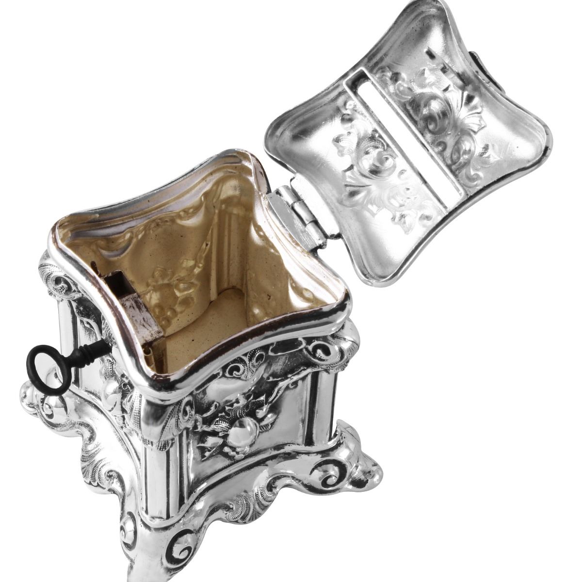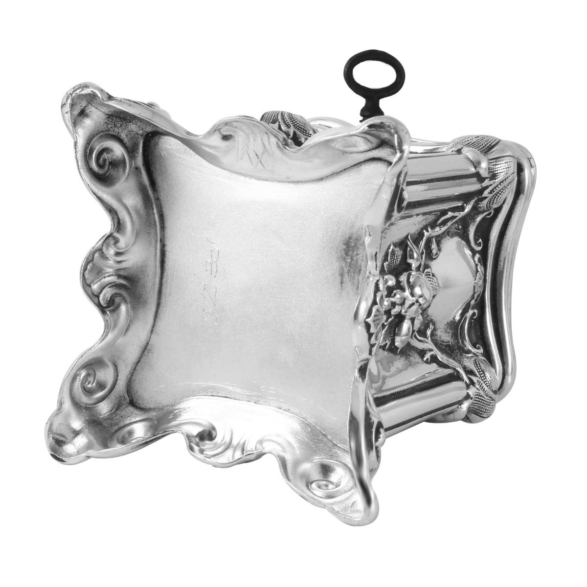 Beautiful Tzedakah Box in excellent condition. Rare model with a lock and key in perfect working order. Very rare and collectable in this condition. This item came to us out of an estate in the Los Angeles area. Originally from Germany, the owner's family came to America in the mid 1930’s settling in Chicago. The family moved to Los Angeles in the mid 1970’s. Silver Plate, 139.9 grams, Unknown Polish Manufacture, Circa Early 1900’s, measures 2 3/4 x 2 3/4 x 3 ¾ High. Tzedakah is a Hebrew word literally meaning justice or righteousness but commonly used to signify charity. It is based on the Hebrew word meaning righteousness, fairness or justice. In Judaism, tzedakah refers to the religious obligation to do what is right and just, which Judaism emphasizes are important parts of living a spiritual life. Tzedakah is considered to be one of the three main acts that can annul a less than favorable heavenly decree. WE SHIP WORLDWIDE!