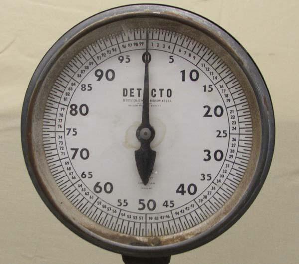 Antique USA Decto Bulk Scale MUST BE PICKED UP, Measures approx. 36H x 20''W x 24''D. Does seem to work, made in Brooklyn, NY.