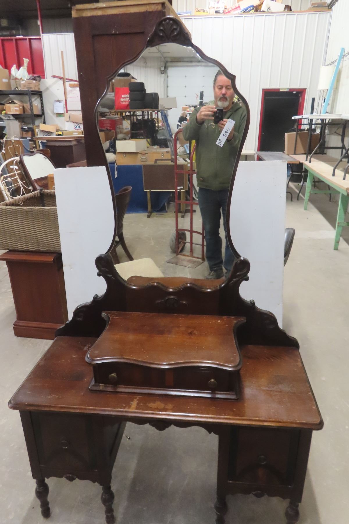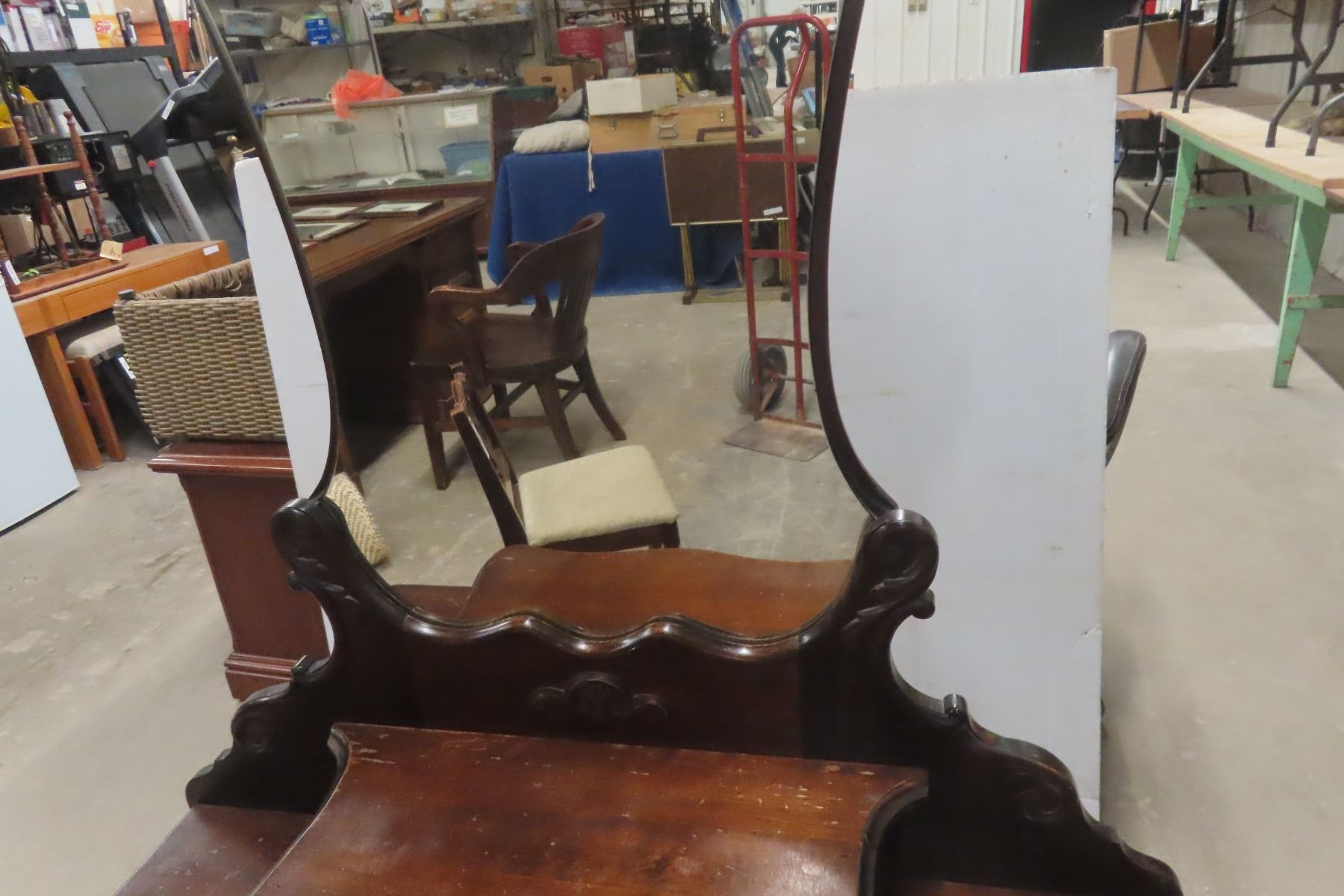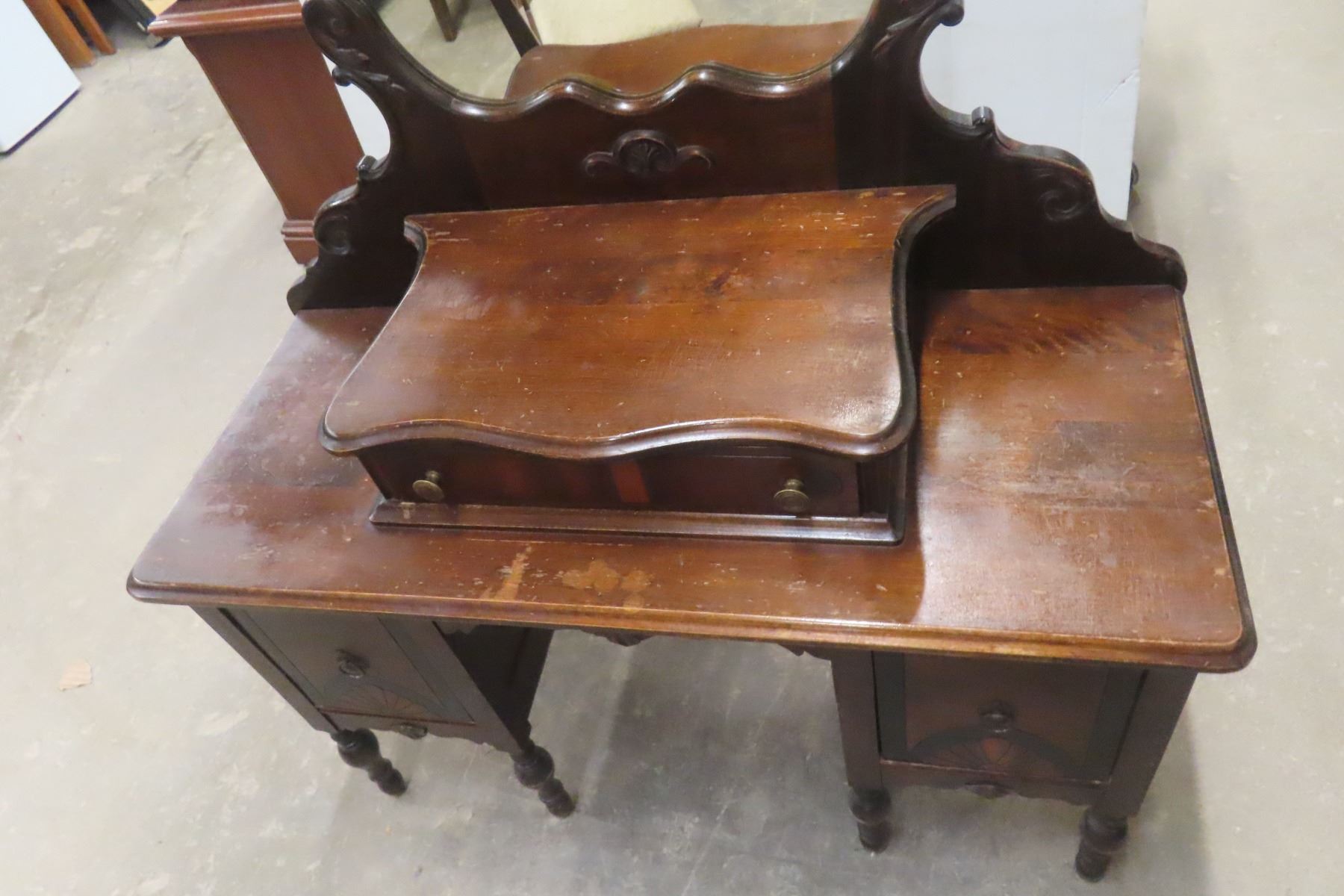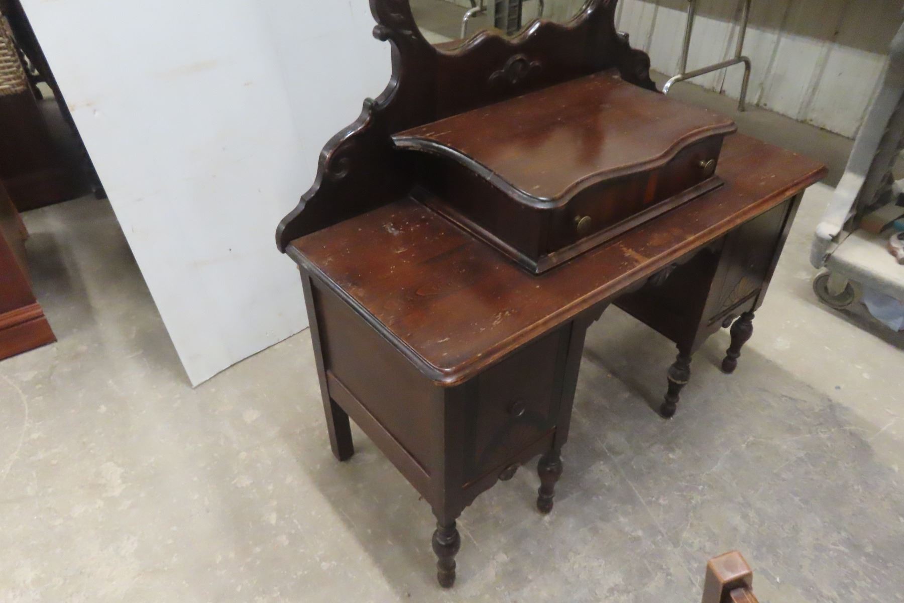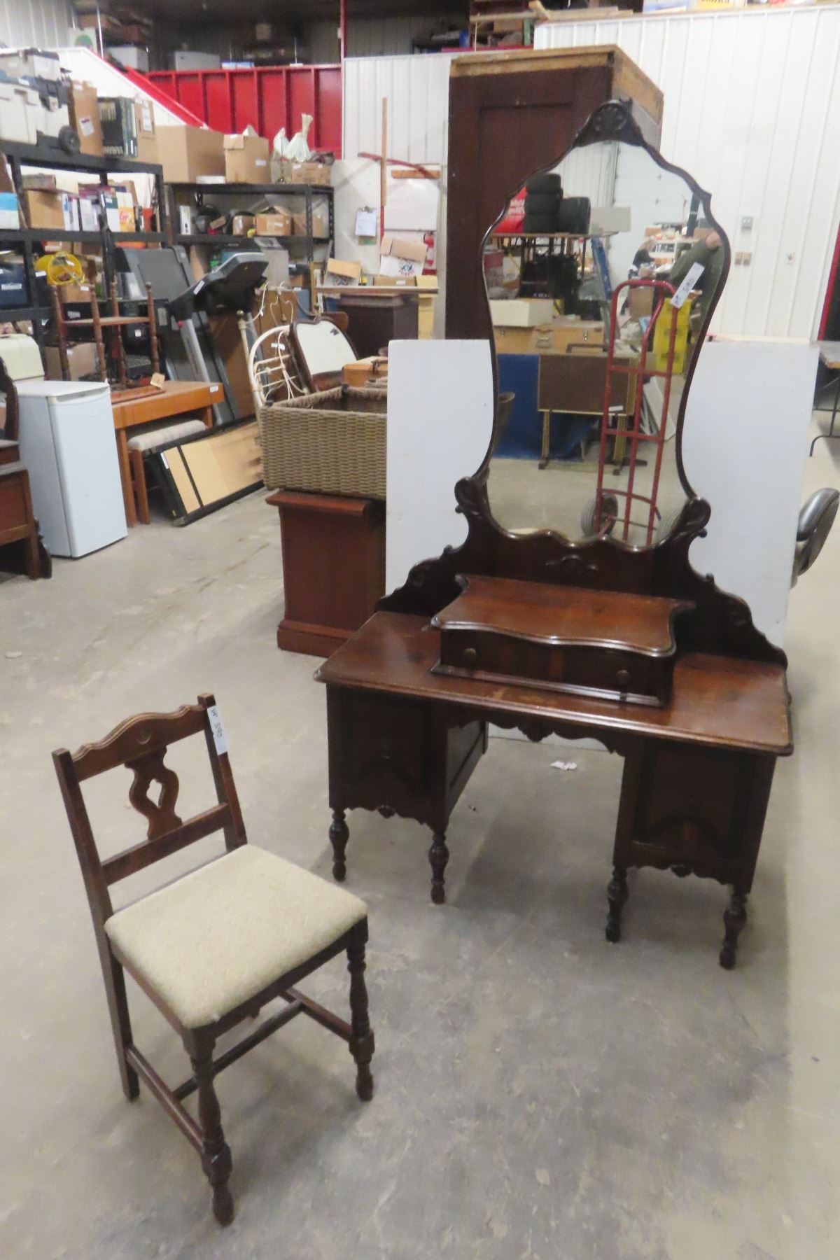 Antique Vanity Dresser 68'' x 17'' x 40'' with Chair
