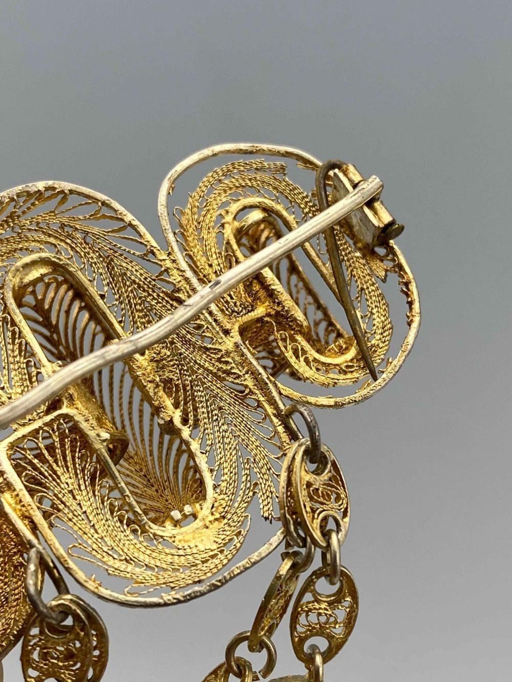 Antique Vermeil Filigree Brooch And Earring Set, 18.8g. Unmarked, Tests As Gold Over Sterling Silver. Brooch Approximately 2.0L x 1.375W in. Earrings Approximately 1.5L x 0.5W in. ALL CREDIT CARDS WILL BE MANUALLY VERIFIED PRIOR TO SHIPMENT.