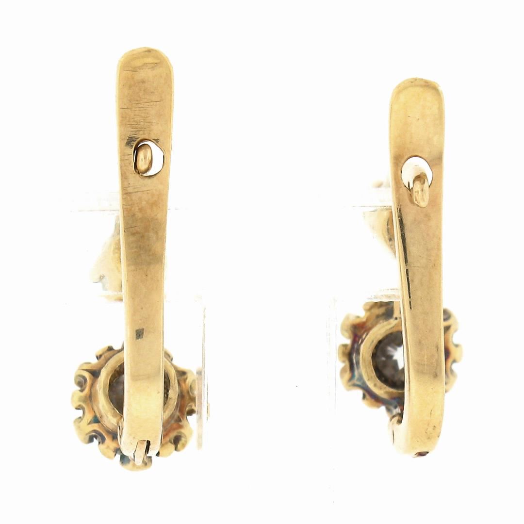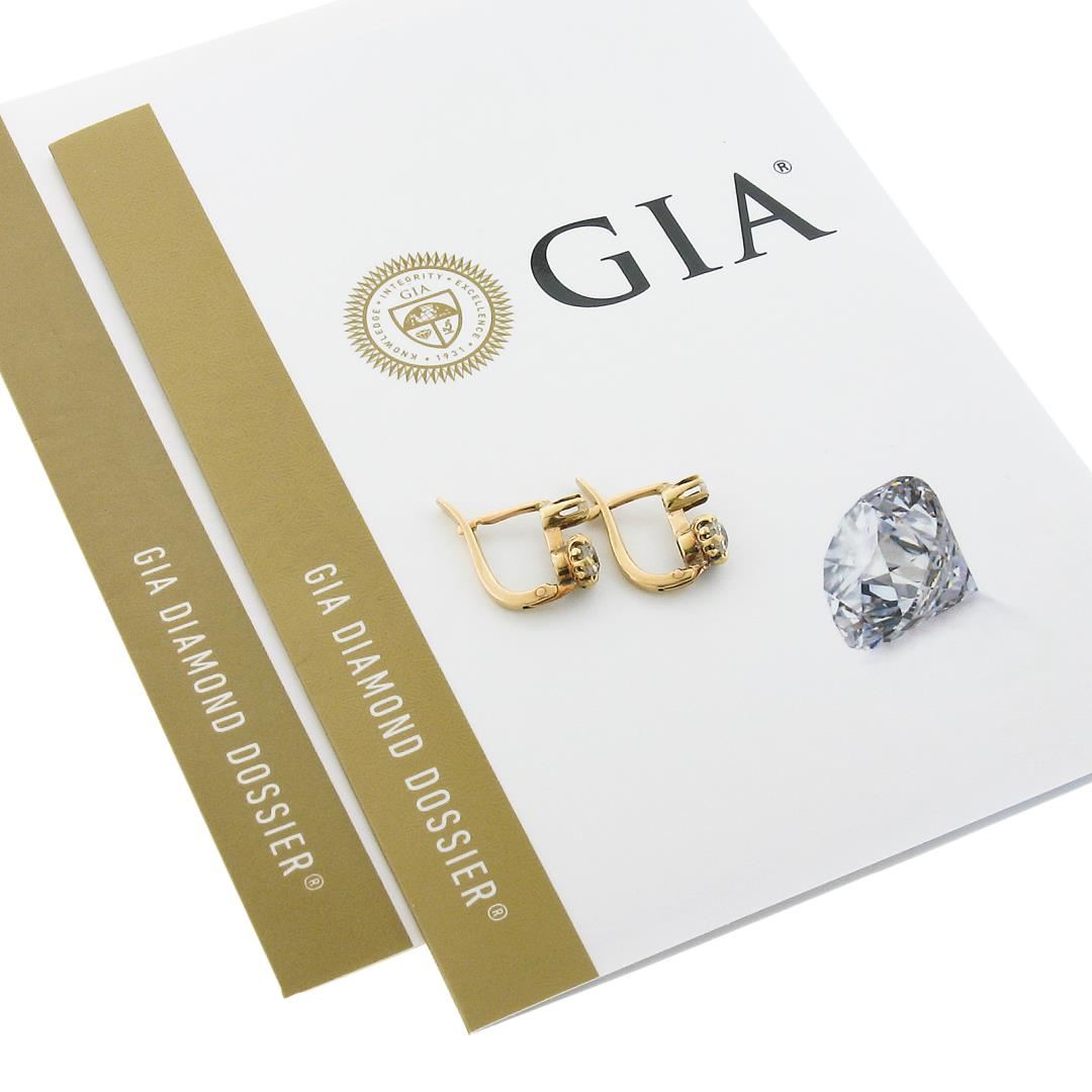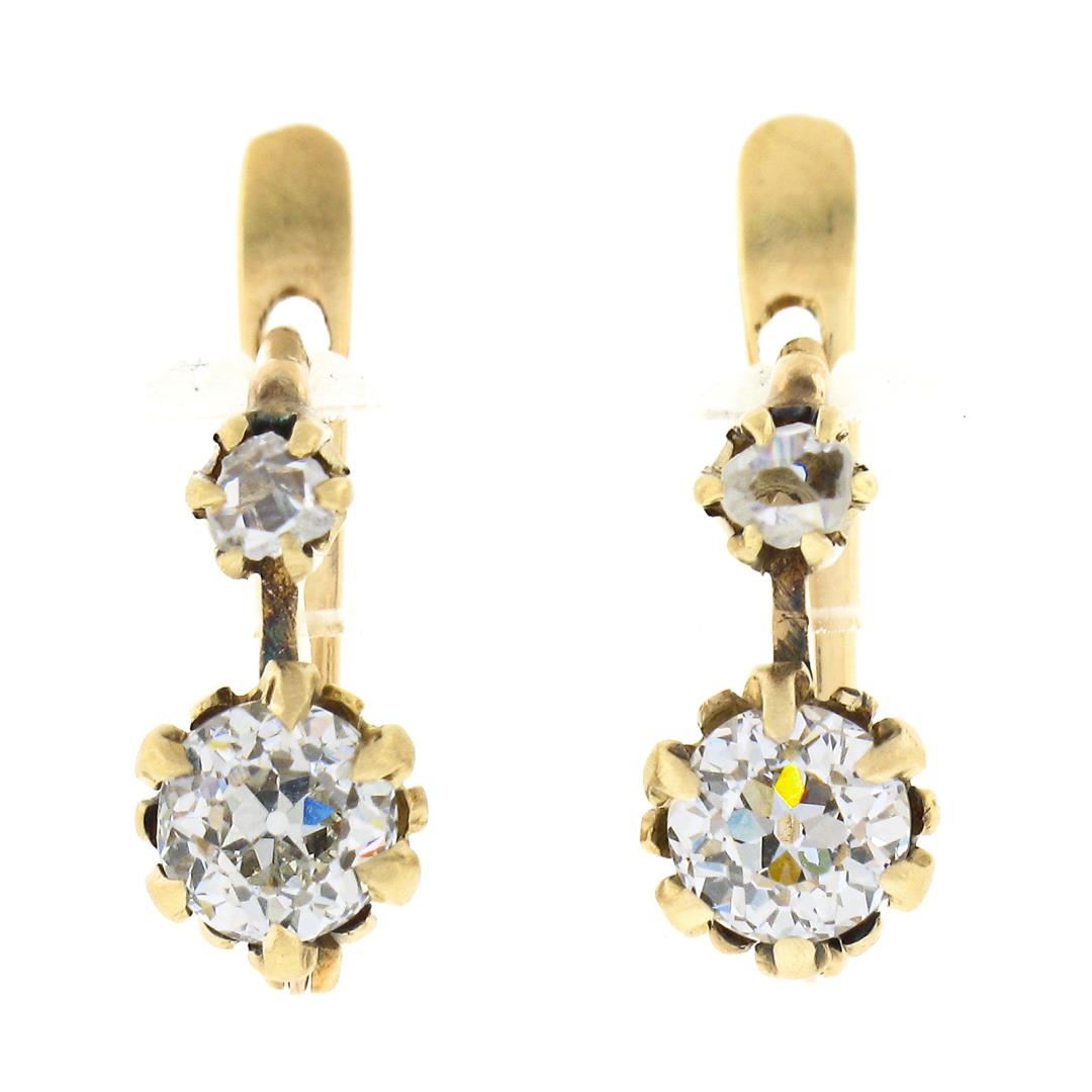 An antique solid 14k yellow gold drop earrings, with 2 GIA graded old european cut natural diamonds (H/I - VS1 ; 1.0ctw). and 2 rose cut natural diamonds (H/I - SI2/I1 ; 0.10ctw). The earrings measure approximately 12.6x5.7mm and weigh a total of 2.79 grams. Comes with all original relevant certifications.