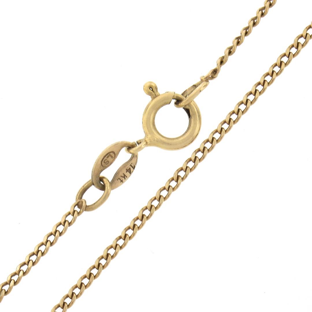 A antique solid 14k yellow gold dangle pendant necklace, with 10 old rose cut natural diamonds (G/H - SI1/SI2 ; 0.78ctw). 15.75 inch curb link chain, 5.81 grams total weight, pendant measures 32.40x21.70mm.
