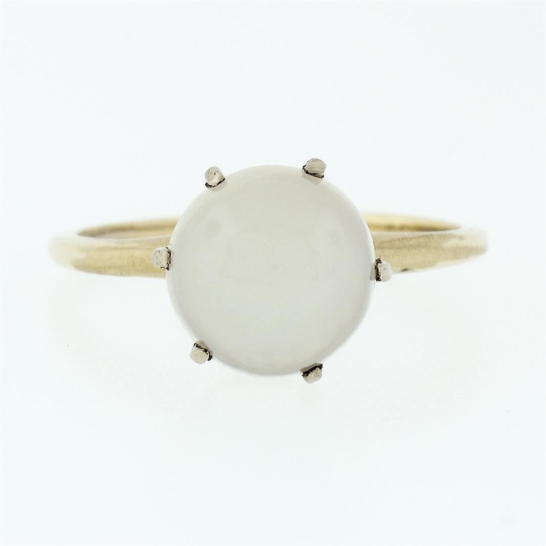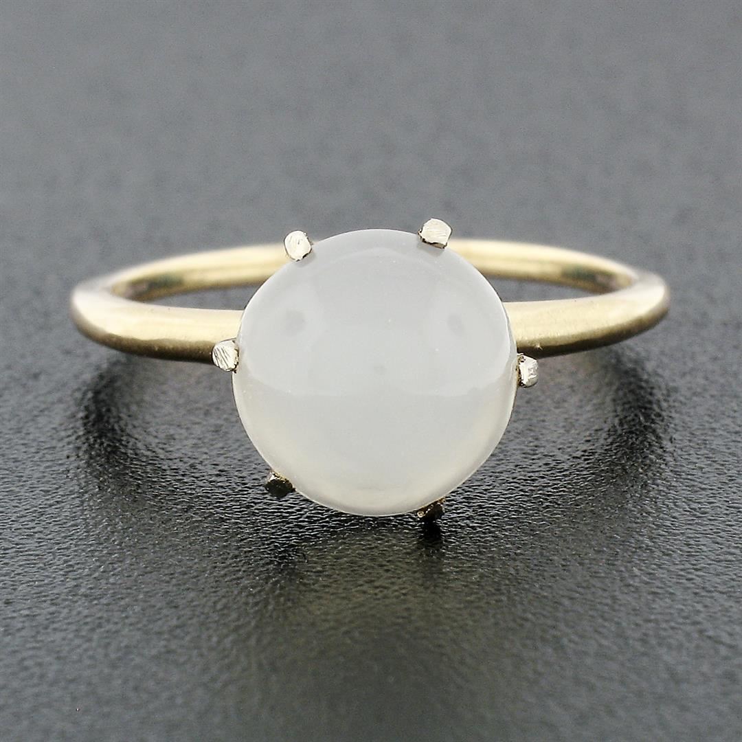 Antique Victorian 14k Gold 8.3mm Round Cabochon Moonstone 6-Prong Solitaire Ring