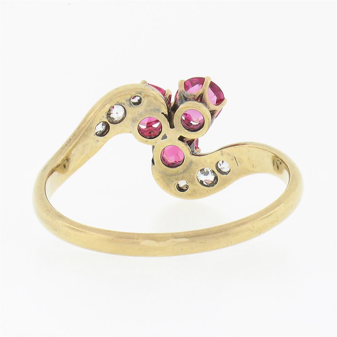 An antique solid 14k yellow gold bypass ring, with Gia certified 3 old mine cut natural spinels (0.90ctw ), and 6 old mine cut natural diamonds (G/H -VS1/VS2 ; 0.14ctw). The ring is size 8.5, weighs a total of 2.54 grams, and measures 11.0mm wide. Comes with all original relevant certifications.