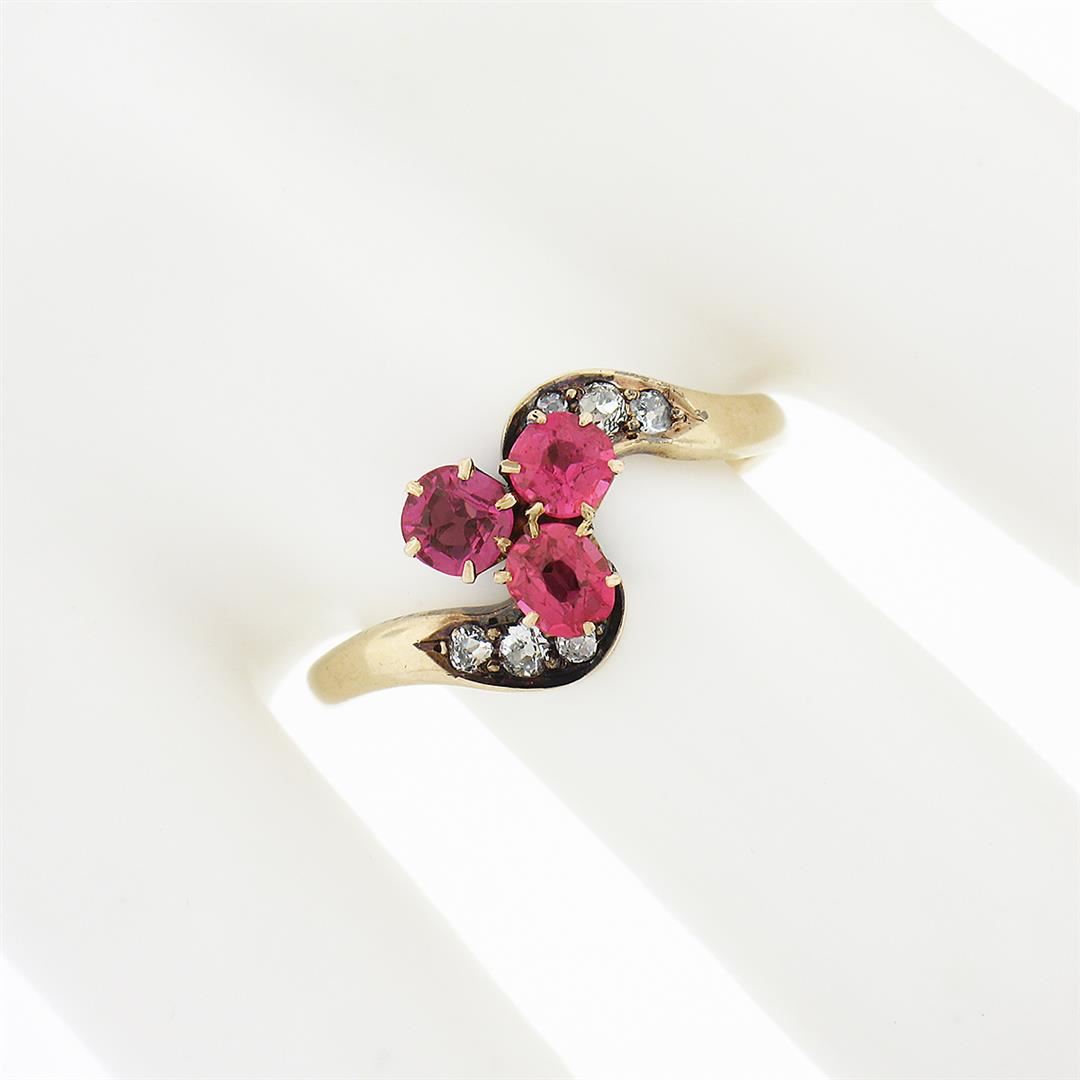 Antique Victorian 14k Gold GIA NO HEAT Pink Spinel Cluster & Diamond Bypass Ring