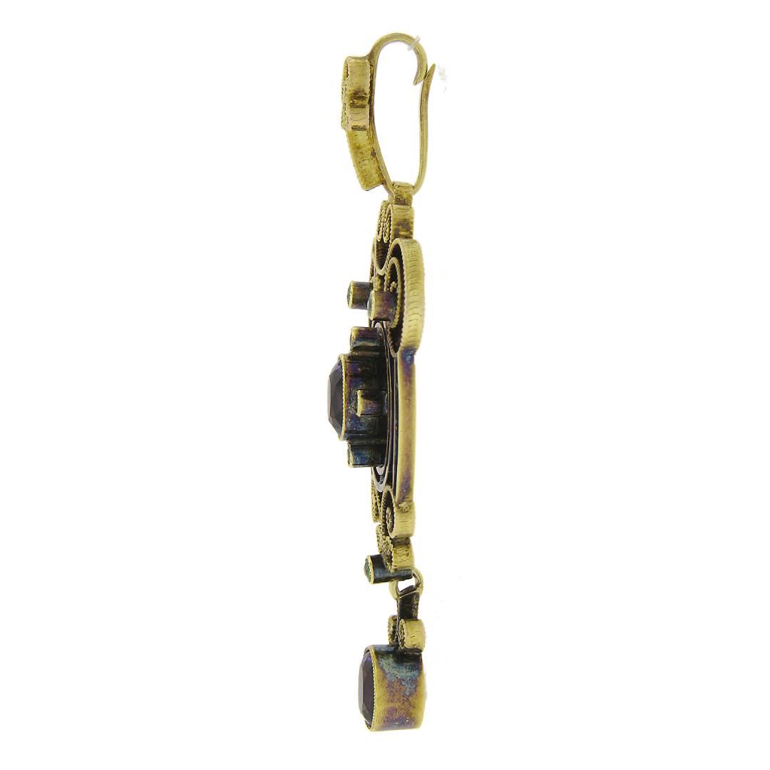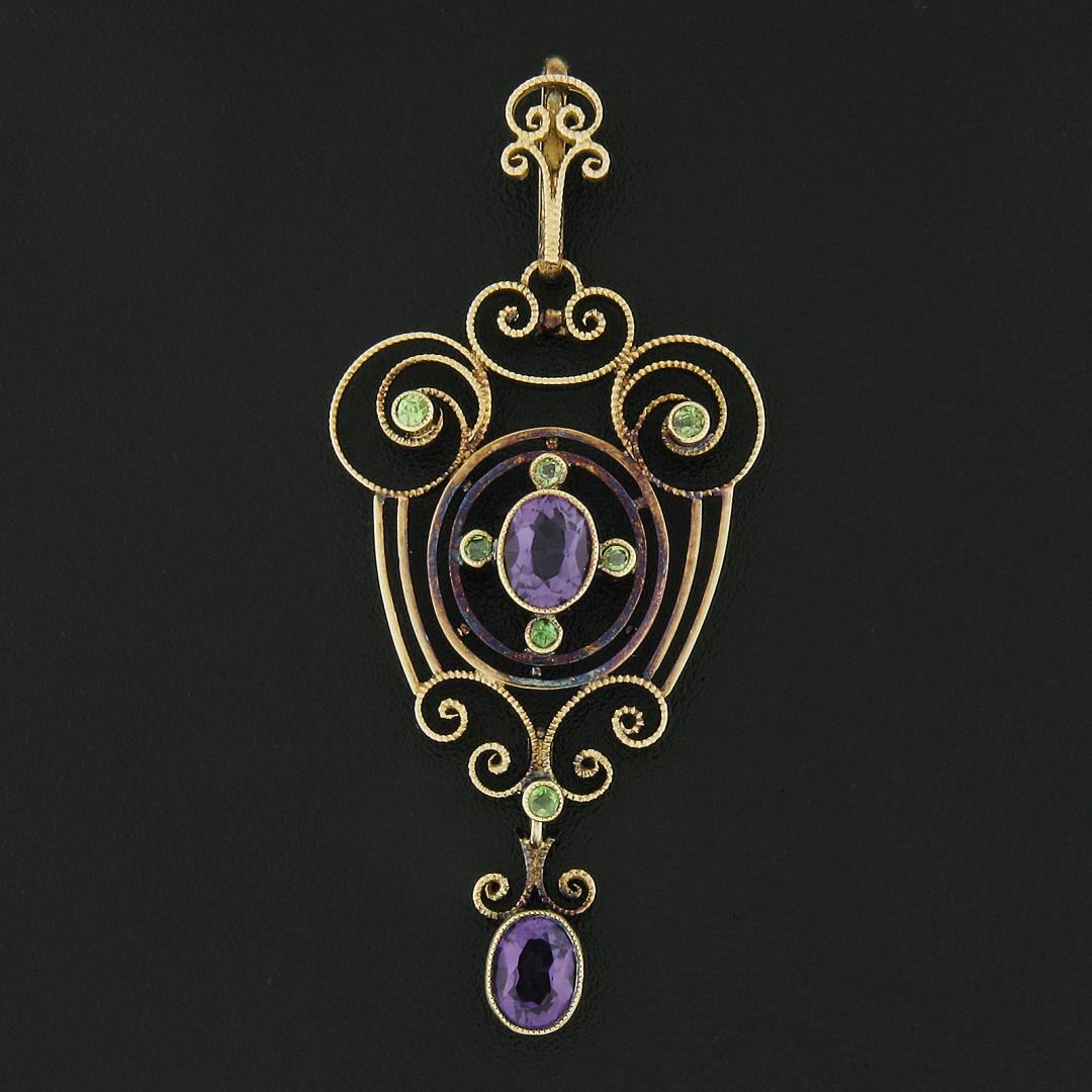 Antique Victorian 15k Gold Amethyst & Demantoid Garnet Dangle Lavalier Pendant
