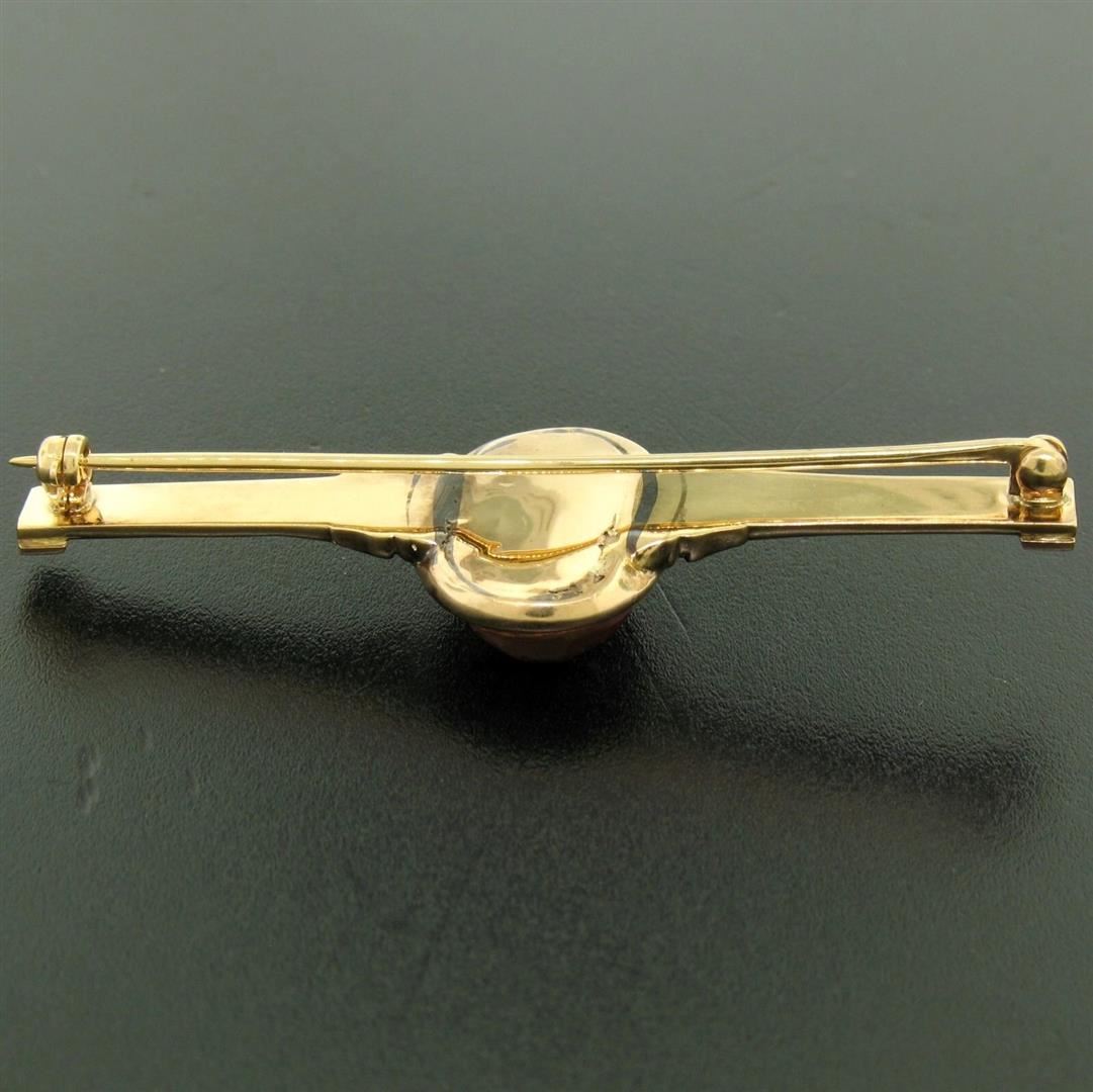 Antique Victorian 15k Solid Rosy Yellow Gold Carved Carnelian Bar Pin Brooch