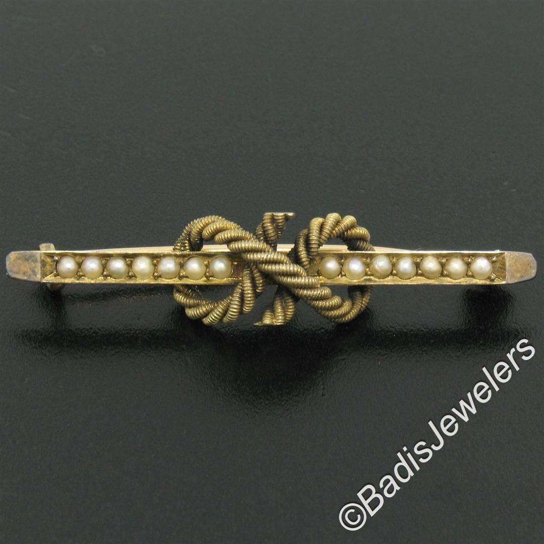 An excellent condition antique bar pin with 14 natural seed pearls. Measures 43.45x9.25mm and weighs a total of 4.0 grams.