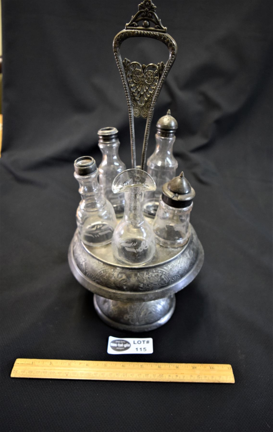 Antique Victorian 5 Pc. Etched Glass Cruet Set