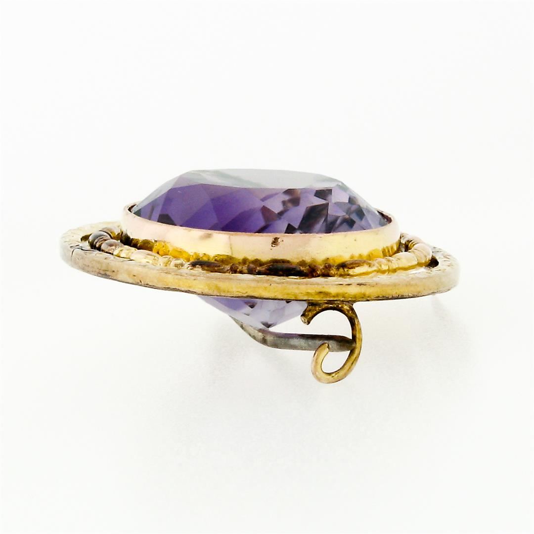 Antique Victorian 9k Yellow Gold Large Medium Purple Amethyst Open Frame Brooch