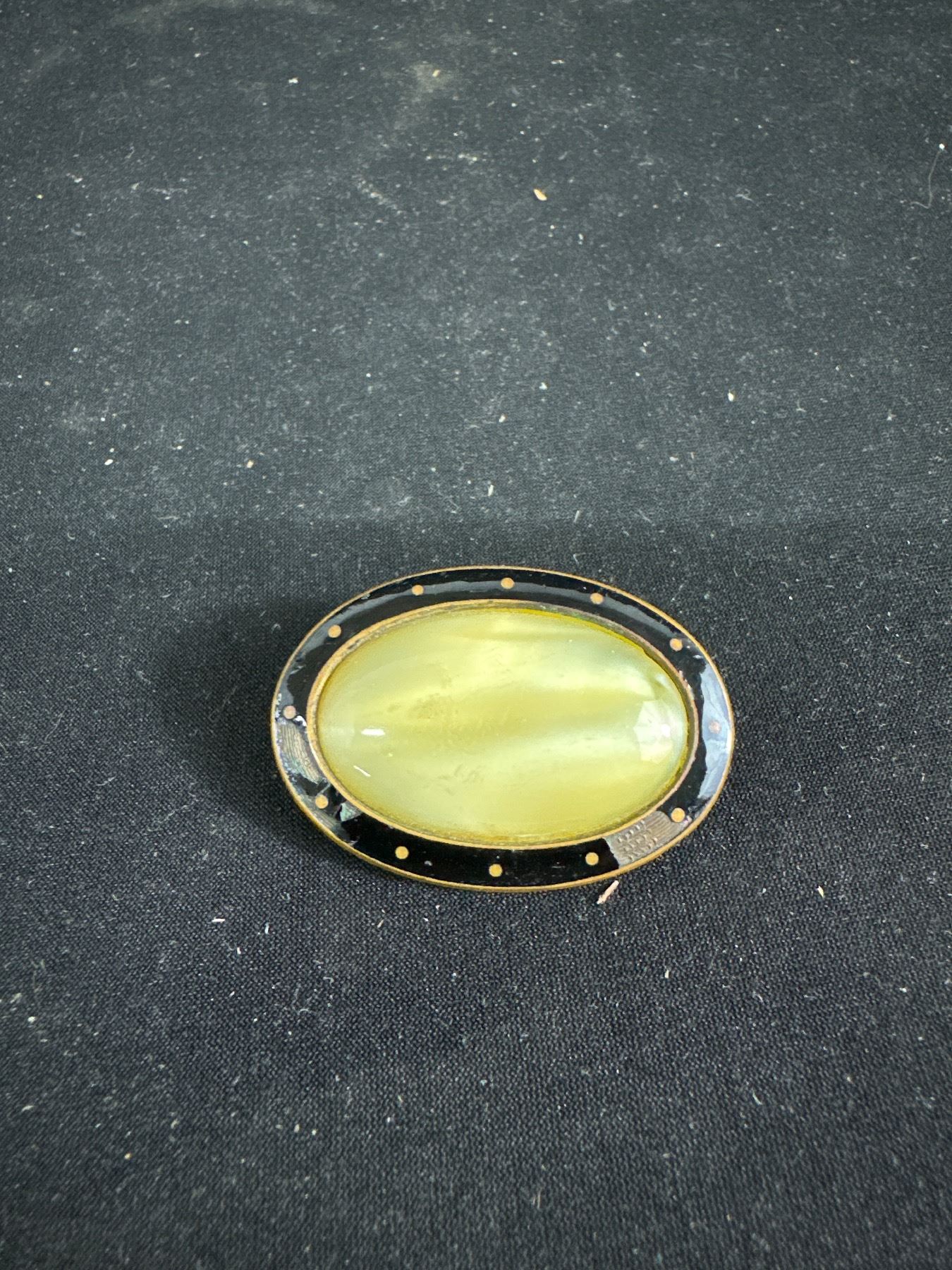 Antique Victorian Brooch w/ Contour Stone Enanmel, Some Damage In Enamel Visible