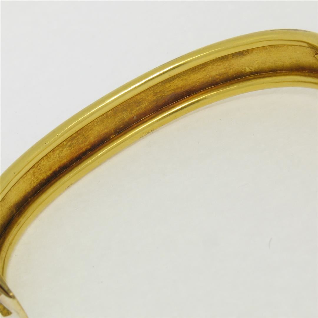 An antique victorian solid 18k gold bangle bracelet, with 18 natural pearls (2.0-2.25mm) and blue enamel work. It weighs a total of 20.65 grams, measures 25.60mm wide, and measures 6 inches in length.
