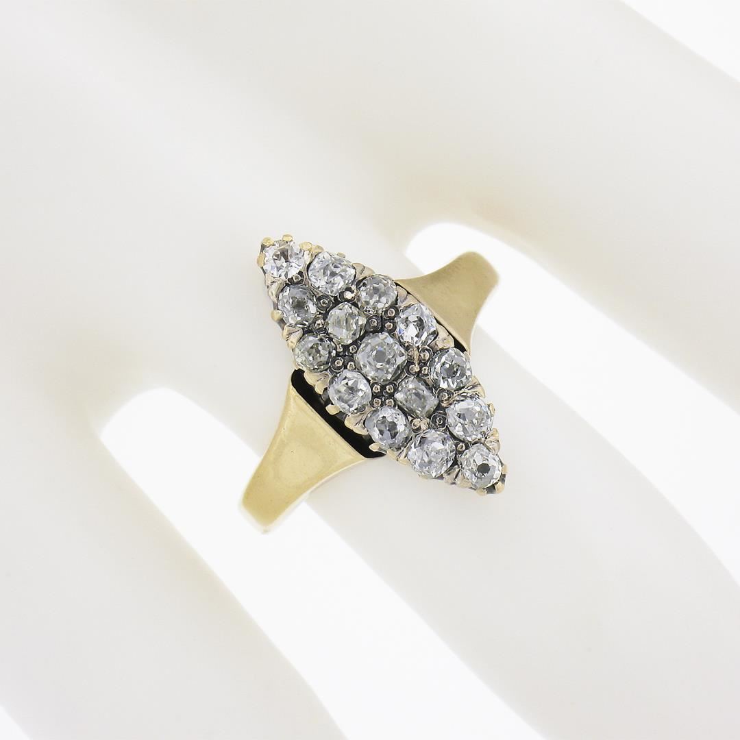 Antique Victorian Gold 1.6ct Old Mine Cut Diamond Navette Marquise Cocktail Ring