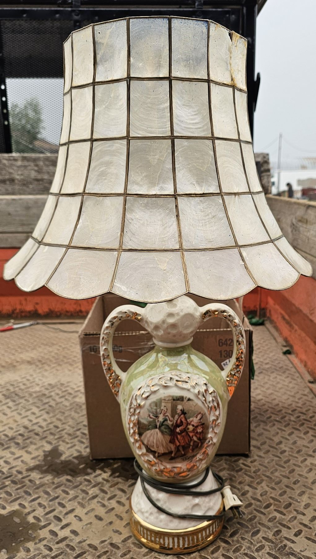 Antique Victorian Lamp w/ Pearl Shell Shade