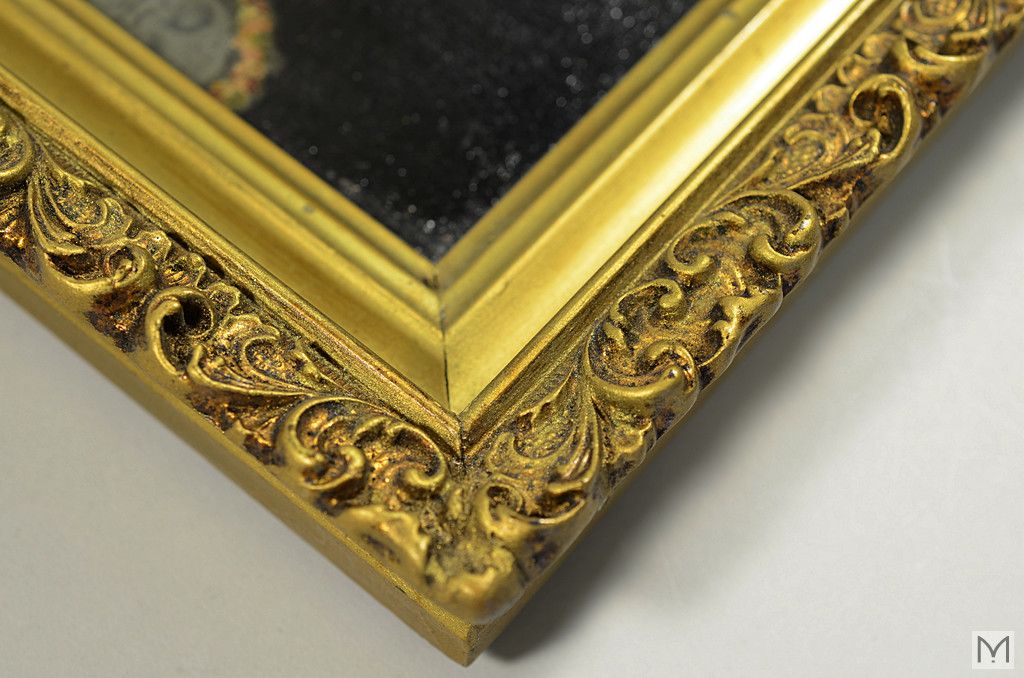Excellent antique condition. No paint loss noted. Frame shows a couple minor losses (chips) at corners and edges.