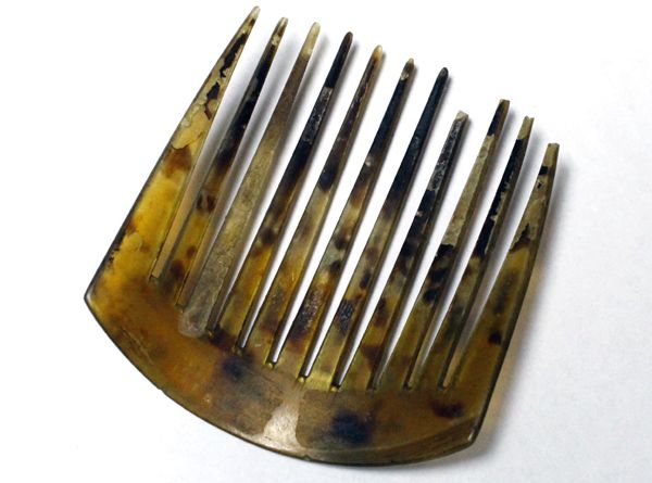 Antique Victorian Tortoise Shell Comb, measures 3.75'' x 3.5'', one of the teeth is broken off about 5/16 of an inch