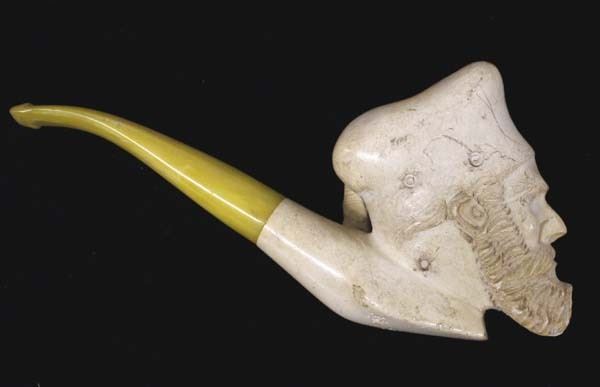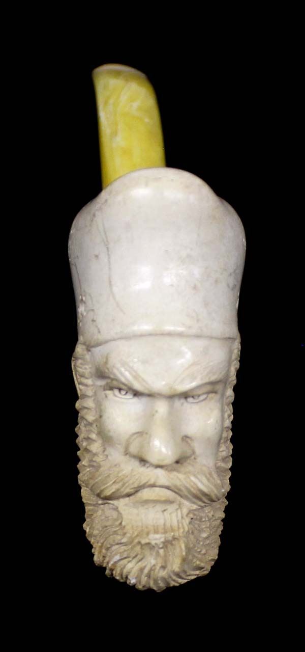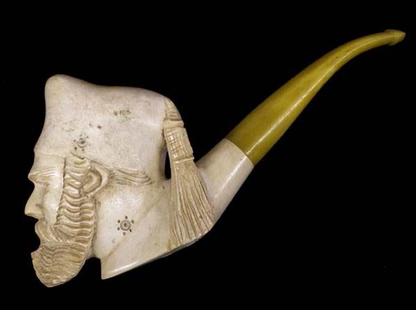 Antique/Vintage Meerschaum Pipe with Bakelite Stem, bearded man in tasseled hat, measures 3.5'' x 9'', seems to be marked on the bottom, very intricate details