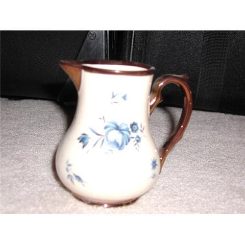Antique Wade Lusterware Pitcher/Creamer. Rim at top, rim on bottom, and handle are in copper lusterware. Body of pitcher/creamer is cream with lovely blue flowers. Crazing on the cream.