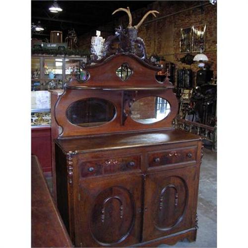 <tr><td>Title:Antique Walnut Buffet Cabinet--Carved Deerhead</td></tr>