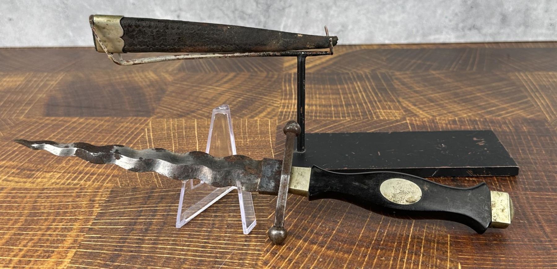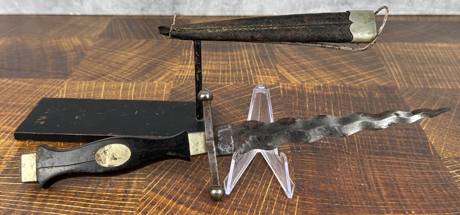 Gorgeous old dagger. Ebony handle with German Silver Inlay. As carried by Gamblers and Prostitutes in the Old West. 10" long.